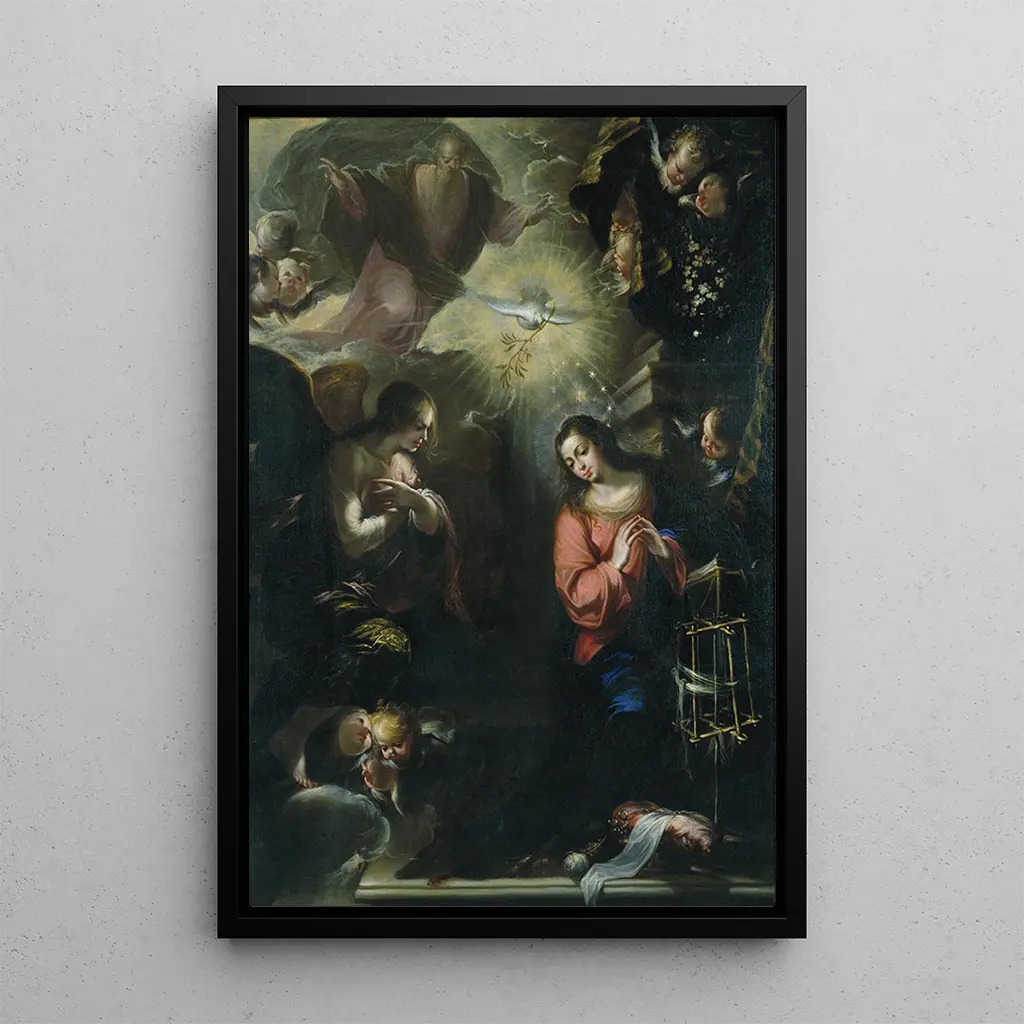L'Annonciation av Francisco de Solís är ett konsttryck som fångar det heliga ögonblick då ärkeängeln Gabriel meddelar Jungfru Maria att hon ska bli mor till Guds Son. Kompositionen kännetecknas av livfulla färger och ett mjukt ljus som omsluter figurerna, vilket skapar en atmosfär som är både lugn och mystisk. De noggrant utförda detaljerna i draperingarna och ansiktsuttrycken vittnar om en imponerande teknisk skicklighet. Scenen är fylld av symboler, såsom liljan, som representerar renhet, och den öppna boken, som är en symbol för det gudomliga ordet. Denna målning inbjuder till eftertanke och meditation över mysteriet med inkarnationen.