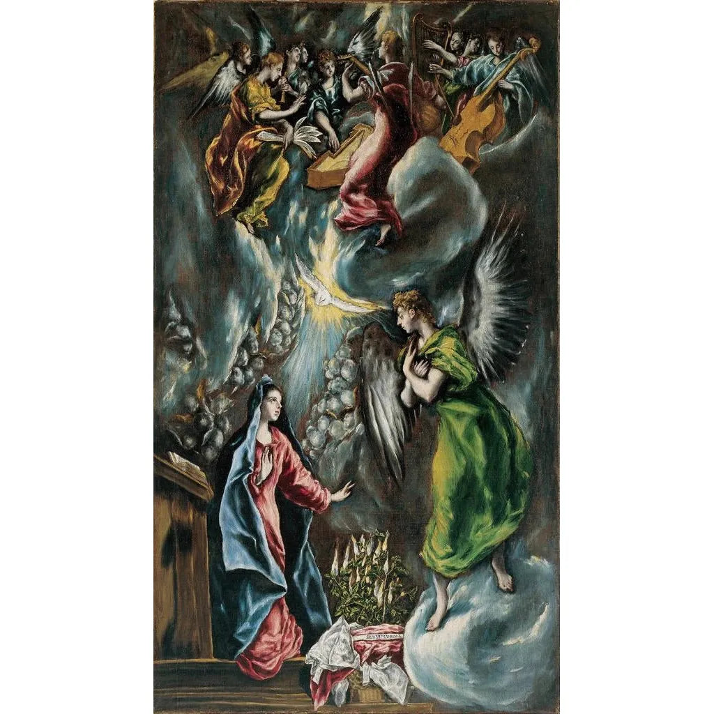 El Greco, en ikonisk figur inom den spanska renässansen, revolutionerade måleriet med sin nyskapande metod. Hans utbildning på Kreta och i Venedig gjorde det möjligt för honom att integrera olika konstnärliga influenser, men det var i Toledo som han verkligen hittade sin röst. L'Annonciation, utförd i början av 1600-talet, illustrerar hans kreativa geni och hans förmåga att uttrycka djupa andliga teman. Genom att avvika från tidens konventioner banade El Greco väg för framtida konstnärliga rörelser och stärkte sin position som en förnyare i konsthistorien.
