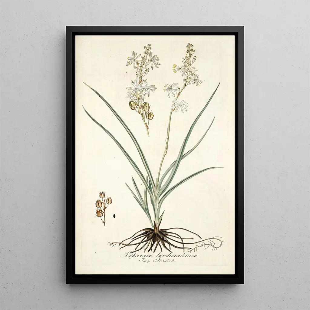 Konsttrycket av Anthericum bipedunculatum är ett idealiskt dekorativt föremål för att försköna ditt hem, oavsett om det är i ett vardagsrum, ett kontor eller ett sovrum. Dess tryckkvalitet och trohet mot de ursprungliga färgerna gör det till ett attraktivt val för konst- och botanikkännare. Detta konsttryck ger en frisk och lugnande känsla till ditt utrymme, samtidigt som det väcker beundran hos besökarna. Genom att integrera detta konsttryck i din inredning ger du din omgivning en touch av naturlig elegans och hyllar växternas skönhet.