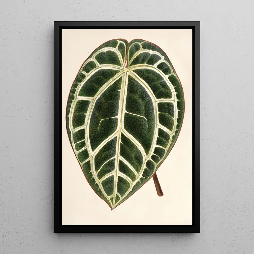Konsttrycket av Anthurium crystallinum är ett dekorativt inslag som harmoniskt passar in i olika utrymmen, oavsett om det är i ett vardagsrum, ett kontor eller ett sovrum. Dess reproduktionskvalitet garanterar en trohet mot färger och detaljer i det ursprungliga verket, och kan tillföra en touch av natur till ditt hem. Den estetiska dragningskraften i detta tableau ligger i dess förmåga att framkalla en tropisk atmosfär, samtidigt som det är tillgängligt och elegant. Genom att välja denna canvas, väljer du en dekoration som inte bara förskönar, utan också berättar en historia, den om en fascinerande växt och dess visionära skapare.