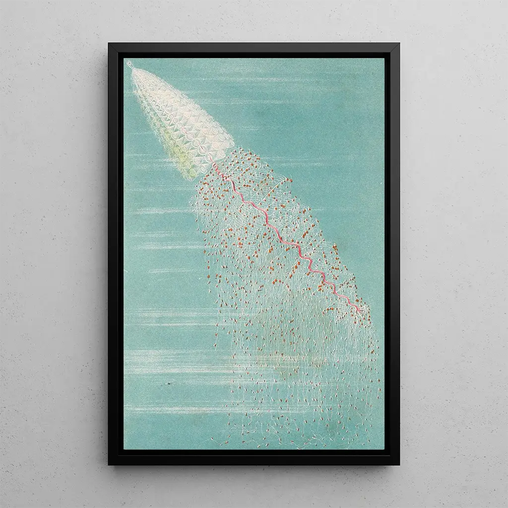 Konsttrycket "Apolmie contourne" av Alfred Frödl utmärker sig genom sin djärva komposition och sina livfulla färger. De organiska formerna flätas samman i en flytande rörelse, vilket skapar en atmosfär som är både dynamisk och lugnande. Nyanser av blått och grönt framkallar marina djup, medan inslag av rött och orange tillför en oväntad värme. Frödls teknik, som kombinerar målning och collage, ger en unik textur till detta konsttryck och bjuder in betraktaren att utforska varje detalj. När man betraktar detta konstverk känner man en koppling till naturen och ett kall att drömma sig bort.