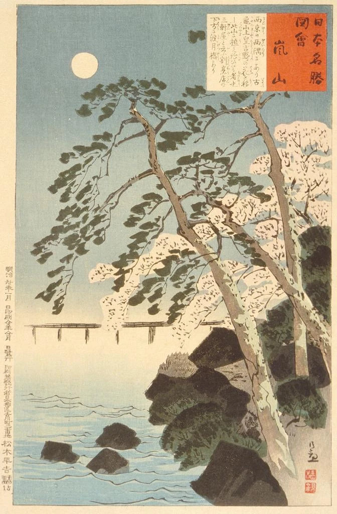 En framstående konstnär från 1800-talet, Kobayashi Kiyochika spelade en avgörande roll i övergången från ukiyo-e till mer samtida konstformer. Hans karriär präglades av en vilja att experimentera med moderna teman samtidigt som han höll fast vid traditionella tekniker. Kiyochika påverkades av västvärlden och integrerade perspektiv- och kompositionsmoment som berikade hans verk. Hans talang för att fånga skönheten i japanska landskap, som Arashiyama, gjorde honom till en oumbärlig figur inom japansk konst, hyllad för sin innovation och respekt för traditionerna.
