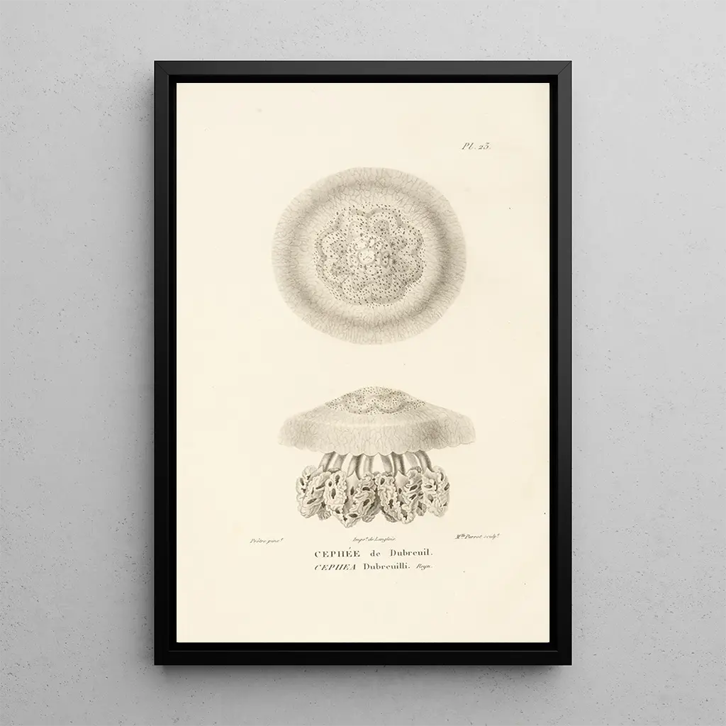 Centurie zoologique Pl23 : ett hyllning till den djurliga mångfalden Konsttrycket av Centurie zoologique Pl23 visar ett fascinerande galleri av djur, var och en illustrerad med en anmärkningsvärt noggrann precision. De livfulla nyanserna och de raffinerade detaljerna skapar en levande atmosfär, där varje varelse tycks komma till liv under betraktarens blick. Detta verk, genom sin konstnärliga ansats, framkallar inte bara skönheten hos arterna, utan också vikten av deras bevarande. Harmoni mellan färger och former inbjuder till djup eftertanke, och hyllar den rika faunan. René Primevère Lesson : en konstnär i skärningspunkten mellan konst och vetenskap René Primevère Lesson, naturalist och konstnär, präglade 1800-talet med sina illustrationer av stor noggrannhet. Hans arbete utgör en del av en tid då vetenskaplig utforskning och konst förenades för att dokumentera biologisk mångfald. Påverkad av resor och upptäckter från sin tid, lyckades han fånga essensen av djuren med en kombination av vetenskaplig och estetisk metod. Lesson är erkänd för sin förmåga att förena zoologisk exakthet med konstnärlig känslighet, vilket ger honom en framstående plats i historien om naturalistisk illustration. En dekorativ förvärv med många fördelar Konsttrycket av Centurie zoologique Pl23 är ett dekorativt verk som berikar varje levnadsyta, oavsett om den är modern eller klassisk. Dess utskriftskvalitet garanterar en exceptionell trohet mot detaljerna i originalverket, samtidigt som det tillför en touch av elegans till din inredning. Denna tavla är perfekt för att väcka intresse och nyfikenhet, oavsett om det är i ett vardagsrum, ett kontor eller ett sovrum. Genom att integrera denna duk erbjuder du inte bara ett konstverk, utan också en hyllning till naturens skönhet och mångfald.