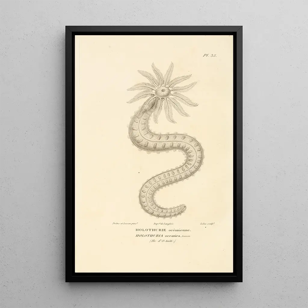 Centurie zoologique Pl35 : ett hyllning till den djurliga mångfalden Konsttrycket av Centurie zoologique Pl35 avslöjar en palett av livfulla färger och delikata former, vilket illustrerar rikedomarna i biologisk mångfald. Varje varelse är avbildad med noggrann omsorg, vilket ger en både konstnärlig och vetenskaplig syn på faunan. Atmosfären som avtecknar sig från detta verk är både lugnande och stimulerande, inbjudande till noggrann eftertanke. Graveringstekniken, i kombination med en skarp känsla för detaljer, ger liv åt dessa djur och gör detta konsttryck särskilt fängslande. René Primevère Lesson : en konstnär vid skärningspunkten mellan konst och vetenskap René Primevère Lesson, naturalist och illustratör, spelade en avgörande roll inom zoologisk illustration under 1800-talet. Hans passion för naturen och hans önskan att dela sina upptäckter ledde till skapandet av verk som förenar vetenskaplig precision med förfinad estetik. Centurie zoologique, som detta verk tillhör, vittnar om hans engagemang för att göra vetenskapen tillgänglig för allmänheten genom konst. Lesson är därmed erkänd som en pionjär, som banade väg för många konstnärer och vetenskapsmän. Ett dekorativt inköp med många fördelar Konsttrycket av Centurie zoologique Pl35 är ett klokt dekorativt val för den som vill tillföra ett inslag av natur till sitt hem. Oavsett om det är i ett vardagsrum, ett kontor eller ett sovrum, kommer denna duk att passa harmoniskt in i din inredning. Dess utskriftskvalitet och trohet mot originalverken garanterar ett imponerande visuellt resultat. Genom att välja detta konsttryck, väljer du en pjäs som inte bara förskönar ditt utrymme, utan också berättar en fascinerande historia om faunan och konsten.