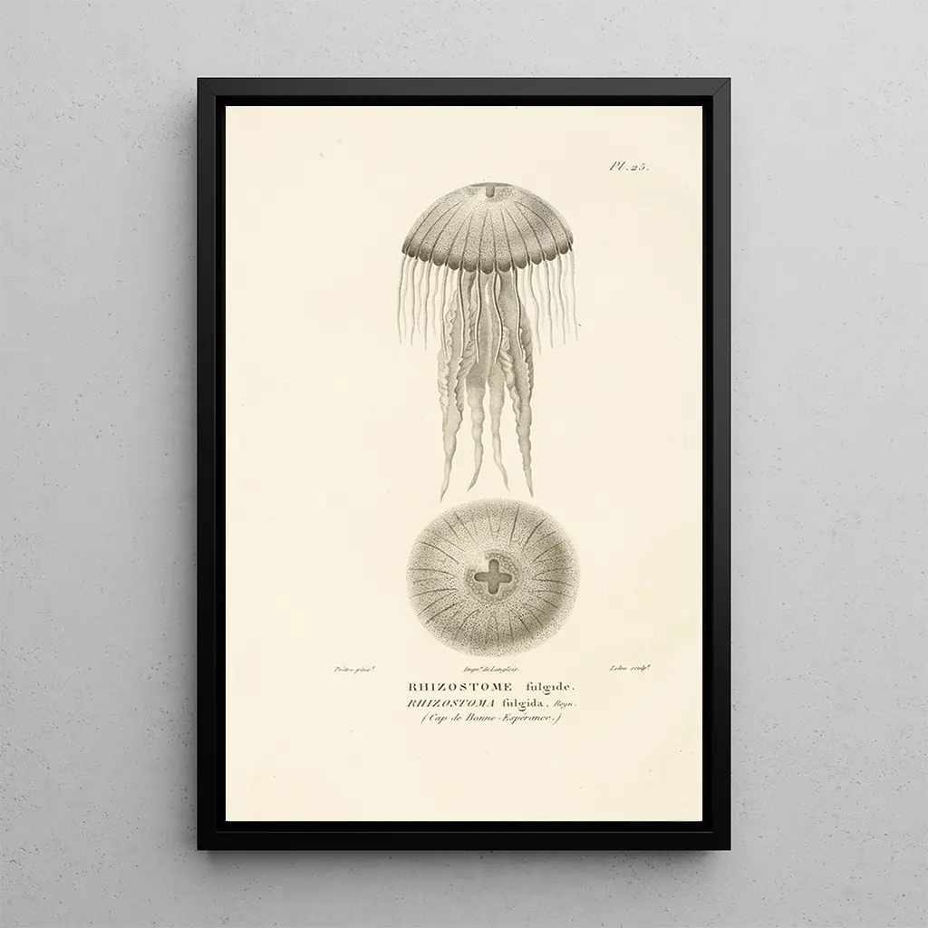 Konsttrycket Centurie zoologique Pl25 av René Primevère Lesson är ett fascinerande verk som lyfter fram skönheten och mångfalden hos djurarter. Genom en palett av livfulla färger och ett exceptionellt detaljfokus förflyttar detta konsttryck betraktaren till en värld där varje varelse tycks komma till liv. De dynamiska poser av djuren, kombinerat med en fin bakgrund, skapar en atmosfär som är både levande och poetisk. Detta konsttryck inbjuder till eftertanke och förundran, och avslöjar djurlivets rikedom på ett nytt sätt.