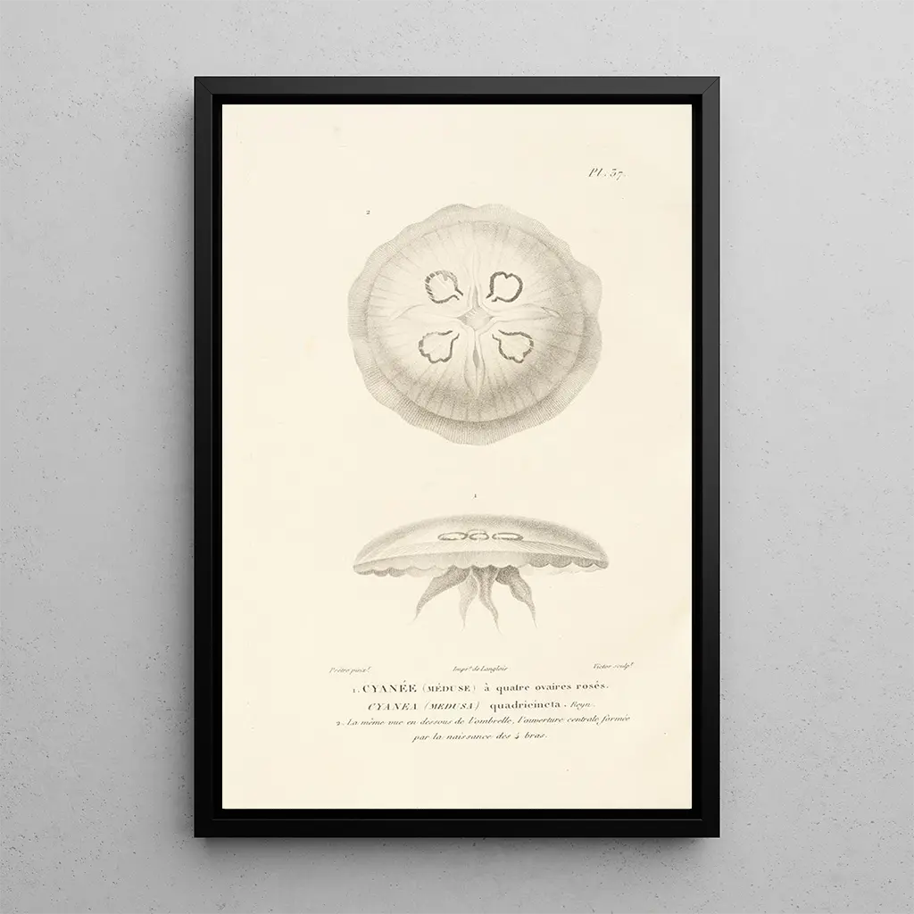 Konsttrycket av Centurie zoologique Pl37 fördjupar oss i en rik och färgstark värld, där varje djur är avbildat med en exceptionell noggrannhet. Detta verk av René Primevère Lesson illustrerar en mängd olika arter, var och en fångad i sitt naturliga habitat. De livfulla nyanserna och de precisa detaljerna i texturerna skapar en fördjupande atmosfär, som bjuder in betraktaren att utforska naturens skönhet. Detta konsttryck är inte bara ett konstnärligt vittnesmål, utan också en hyllning till naturen, som väcker en känsla av förundran och respekt för djurriket.