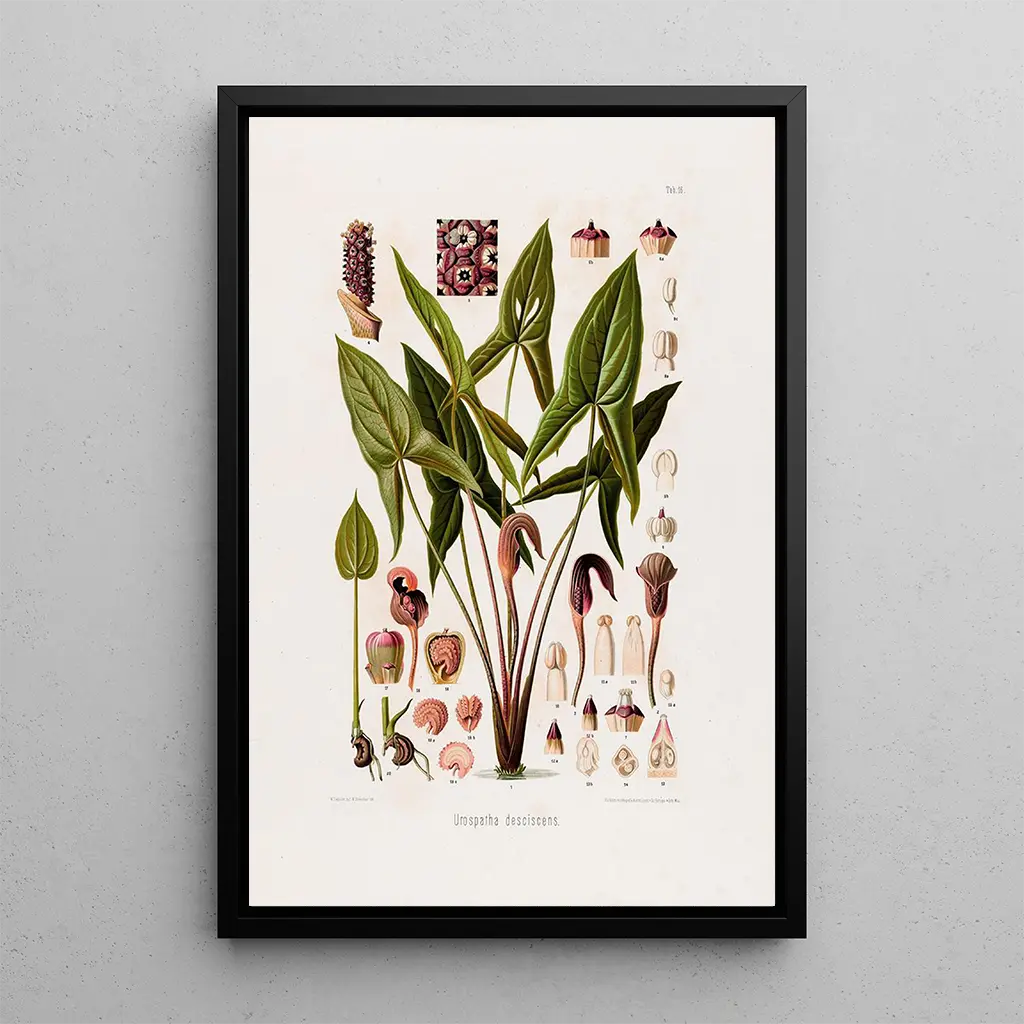 Konsttrycket "Aroideae Maximilianae Pl16" är ett perfekt val för dem som vill tillföra ett naturinslag till sin inredning. Oavsett om det är i ett vardagsrum, ett kontor eller ett sovrum, utmärker sig denna canvas genom sin tryckkvalitet och trohet mot originalverkets detaljer. Dess förfinade estetik och lugnande färgpalett gör den till ett attraktivt dekorativt inslag. Genom att integrera detta konsttryck i ditt utrymme skapar du en varm och inspirerande atmosfär, samtidigt som du hyllar biodiversitetens skönhet.