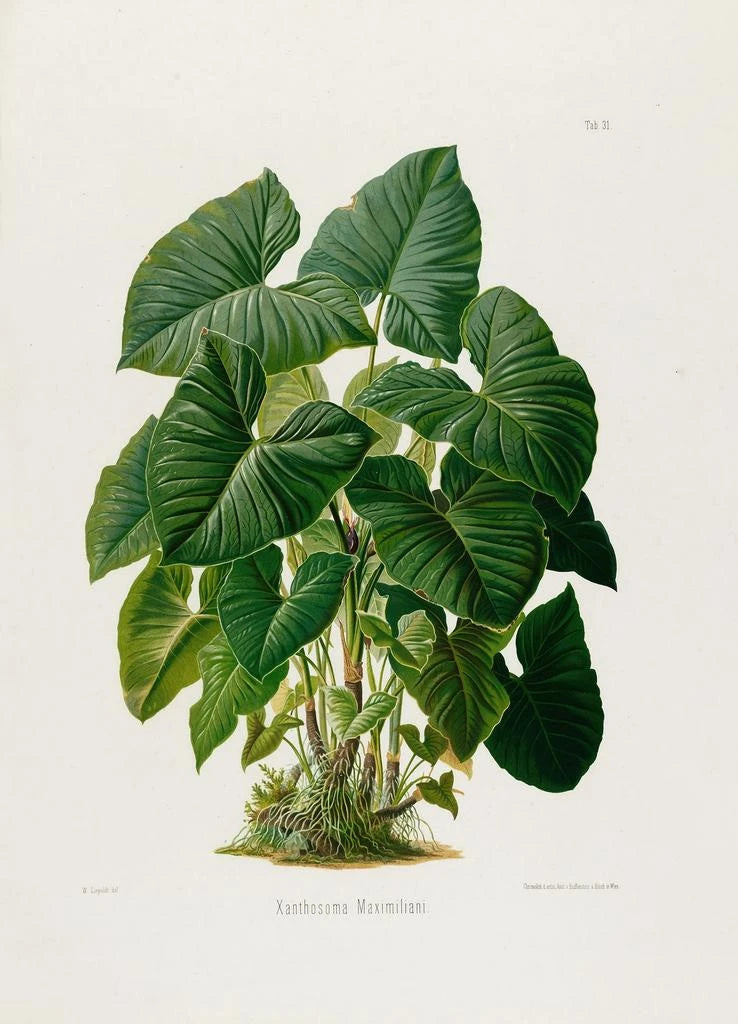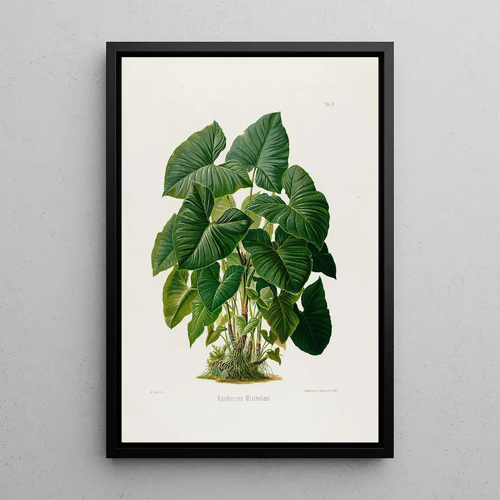 Heinrich Wilhelm Schott, botanist och illustratör från 1800-talet, lyckades förena vetenskap och konst i sina verk. Född 1794, ägnade han sitt liv åt att studera växter, särskilt familjer av tropiska växter. Hans arbete påverkades av de botaniska upptäcktsresorna under hans tid, där upptäckten av nya arter var i sin blomstring. Schott spelade en avgörande roll i dokumentationen av biodiversitet, och hans illustrationer har blivit referenser för botaniker. "Aroideae Maximilianae Pl31" vittnar om hans engagemang för vetenskaplig precision samtidigt som det hyllar den naturliga skönheten, ett arv som lever vidare inom den botaniska konstvärlden.