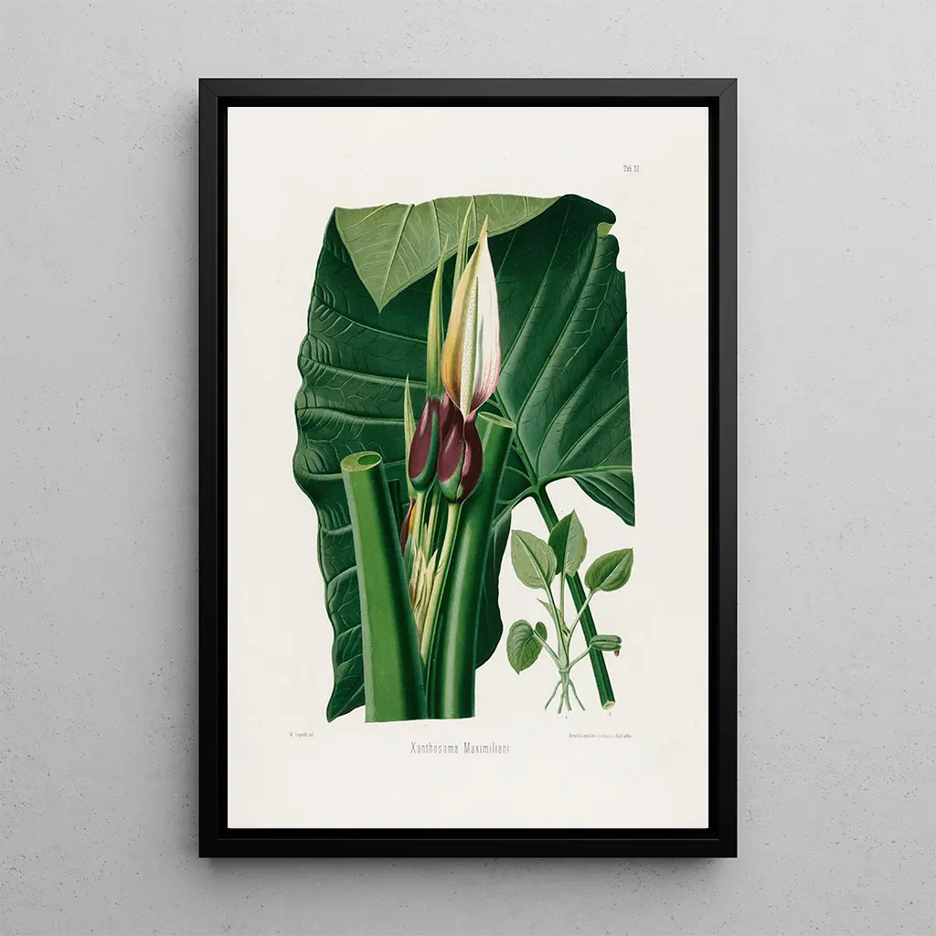 Konsttrycket av "Aroideae Maximilianae Pl32" är ett dekorativt val som kommer att tilltala botanikkännare och naturälskare. Oavsett om det placeras i ett modernt eller klassiskt hem, tillför denna väggbonad en känsla av friskhet och elegans. Dess utskriftskvalitet garanterar en enastående trohet mot färger och detaljer i originalverket, vilket möjliggör full uppskattning av växtens skönhet. Med sitt estetiska tilltal blir detta konsttryck ett centralt dekorationsobjekt som väcker nyfikenhet och beundran hos alla som upptäcker det.