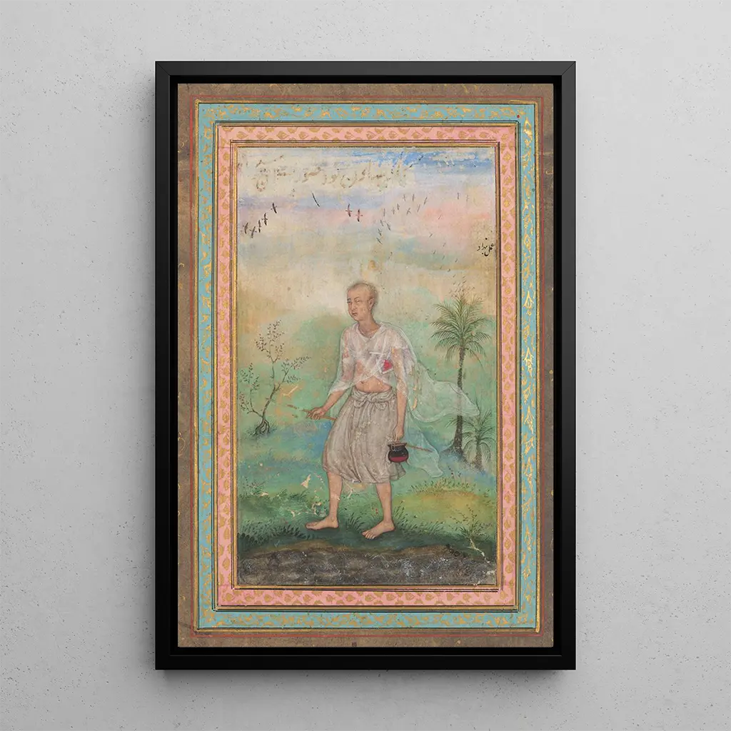 I detta fängslande konsttryck står den jaïniska asceten majestätiskt längs en strand, inbäddad i en atmosfär av lugn och meditation. De jordnära färgerna, blandade med inslag av blått och grönt, återspeglar den omgivande naturen, medan konstnärens delikata teknik understryker djupet av mänskliga känslor. Kompositionen, centrerad kring ascetens figur, inbjuder betraktaren till en introspektiv reflektion, i sökandet efter inre frid. Varje detalj, från draperiet i hans klädnad till uttrycket i hans ansikte, vittnar om en konstnärlig skicklighet som transcenderar det enkla visuella för att beröra själen.