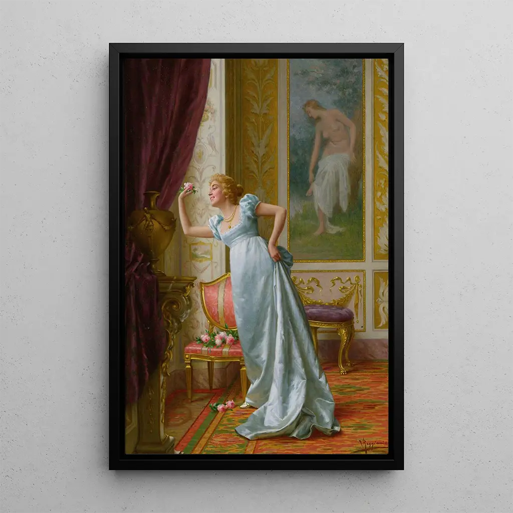 Vittorio Reggianini, född 1858 i Parma, är en italiensk konstnär erkänd för sina genrekonstverk som fångar essensen av den borgerliga livet på 1800-talet. Påverkad av den akademiska rörelsen specialiserar han sig på porträtt och vardagsscener, ofta präglade av romantik och melankoli. Hans karriär sträcker sig över flera decennier, under vilka han vinner internationellt renommé. Reggianini är ofta associerad med den italienska skolans konst, och hans arbete speglar de estetiska värderingarna i hans tid, där tradition möter innovation. Hans verk fortsätter att hyllas för sin förmåga att framkalla djupa känslor och sin noggranna uppmärksamhet på detaljer.