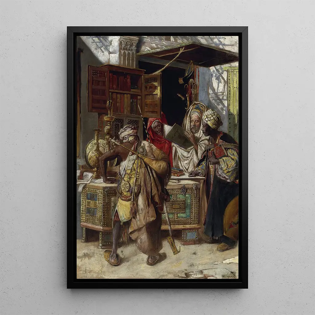 I ett bazar: en livfull scen av det dagliga livet I "I ett bazar" fångar Gyula Tornai den livliga marknadens atmosfär, där de färgstarka stånden blandas med mångfalden av ansikten. Den dynamiska kompositionen, med sina rörelsefyllda figurer, framkallar en känsla av gemenskap och handel. De varma och rika nyanserna, från djupa röda till ljusa gula, ger verket en påtaglig energi. Tornais teknik, som kombinerar impressionism och realism, gör att man nästan kan känna dofterna av kryddor och ljuden av samtal. Detta konsttryck är en äkta inbjudan att fördjupa sig i en värld full av liv och kultur. Gyula Tornai: ett vittne till moderniteten Gyula Tornai, ungersk konstnär verksam i slutet av 1800-talet och början av 1900-talet, är känd för sin förmåga att föreviga scener ur det dagliga livet med en unik känsla. Påverkad av impressionismen, lyckades han fånga essensen av flyktiga ögonblick, samtidigt som han integrerade element av ungersk kultur. Tornai levde i en tid av stora sociala och konstnärliga förändringar, vilket berikade hans verk med ett kontextuellt djup. Hans konsttryck, inklusive "I ett bazar", vittnar om en tid då konsten frigjorde sig från akademiska konventioner för att utforska nya uttrycksformer. En dekorativ konsttryck med många fördelar "I ett bazar" är ett konsttryck som passar perfekt i olika utrymmen, oavsett om det är i ett varmt vardagsrum, ett inspirerande kontor eller ett välkomnande sovrum. Kvaliteten på canvasen och färgernas trohet hyllar originalet, samtidigt som det tillför en touch av elegans och dynamik till din inredning. Detta konsttryck, rikt på detaljer och känslor, fångar blickar och väcker samtal, vilket gör varje stund framför det till en estetisk upplevelse. Att välja detta konsttryck är att välja ett verk som hyllar livet och kulturen, samtidigt som det förskönar ditt hem.