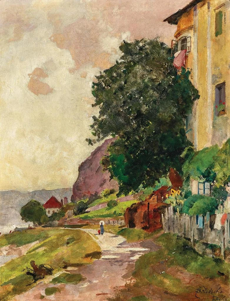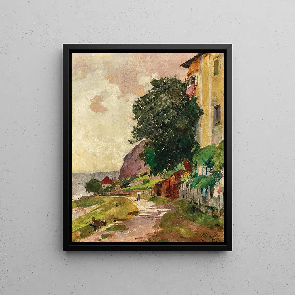 Reproduktion Au Frthof Ramsau - Eduard Zetsche – Introduktion fängslande I det vidsträckta panorama av konsthistoria utmärker sig vissa verk genom sin förmåga att fånga själva essensen av en plats, en epok eller en känsla. "Au Frthof Ramsau - Eduard Zetsche" ingår i denna tradition och ger en fascinerande inblick i den naturliga skönheten och lugnet i de alpina landskapen. Detta verk framkallar inte bara en pittoresk miljö, utan bjuder också in betraktaren till en introspektiv eftertanke, till en resa till hjärtat av Bayerns Alper där tiden tycks stå stilla. Det mjuka ljuset som badar scenen, de delikata nyanserna av grönt och himmelblått blandas för att skapa en nästan drömlik atmosfär, en inbjudan till drömmande och inre frid. Stil och unikhet i verket Eduard Zetsches stil kännetecknas av en impressionistisk ansats, där ljus och färg spelar en avgörande roll. I "Au Frthof Ramsau" använder konstnären ett brett spektrum av tekniker för att återge de subtila variationerna av ljuset på landskapet. Penseldragen är både precisa och flytande, vilket skapar en levande textur som ger liv åt duken. De mjuka och harmoniska nyanserna, från lysande grönt till lugnande blått, vittnar om en särskild känslighet för naturen. Varje element i kompositionen, från majestätiska träd till bakgrundens berg, är noggrant arrangerat för att leda betraktarens blick genom målningen. Denna detaljrikedom, kombinerad med en noggrant utvald färgpalett, ger verket en sällsynt emotionell och visuell djup, som gör att varje betraktare kan fördjupa sig i det och känna dess essens. Konstnären och hans inflytande Eduard Zetsche, en framstående gestalt inom tysk landskapskonst, har lyckats etablera sig som en mästare på naturlig representation. Hans verk speglar en epok präglad av en återgång till naturen och en önskan att fånga dess råa skönhet. Påverkad av de stora mästarna från det förflutna har Zetsche ändå utvecklat en egen stil, som förenar tradition och modernitet. Hans förmåga att översätta de känslor som landskapet väcker i hans målningar har inspirerat många samtida konstnärer, vilket gör honom till en oumbärlig referens inom