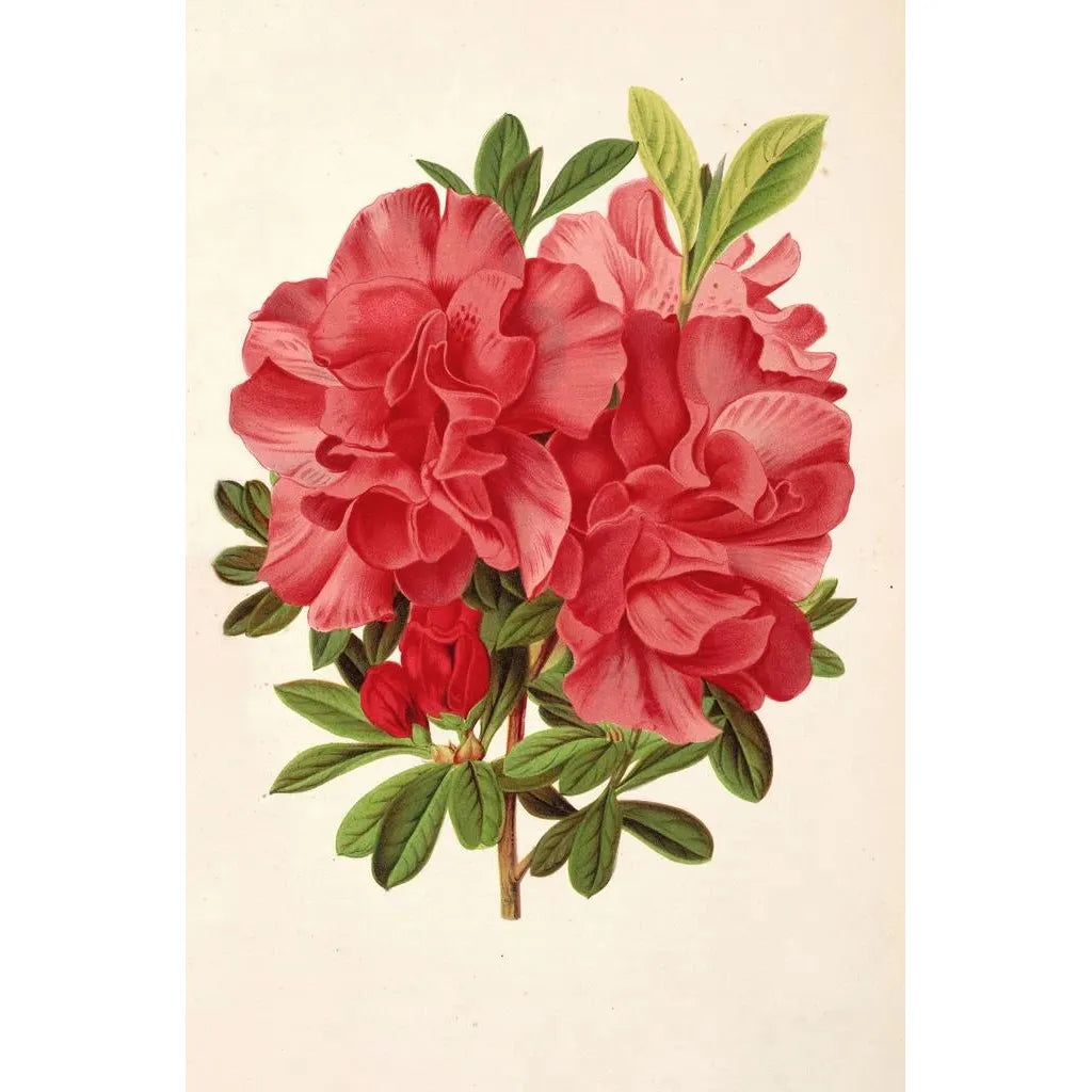 Konsttrycket "Azalée baron de Schickler" av Charles Antoine Lemaire, en fransk målare från 1800-talet, är känd för sina magnifika blomsterbilder. Uppvuxen i en konstnärlig miljö, påverkades han av de stora mästarna i sin tid, särskilt impressionisterna. Lemaire utvecklade en unik stil, som förenar botanisk precision med estetisk känslighet. Hans verk, även om det är mindre känt än vissa samtida, satte sitt avtryck på sin tid genom sin förmåga att fånga blommornas flyktiga skönhet. "Azalée baron de Schickler" vittnar om hans talang och engagemang för naturen, vilket gör honom till en viktig figur inom blomstermåleriet.