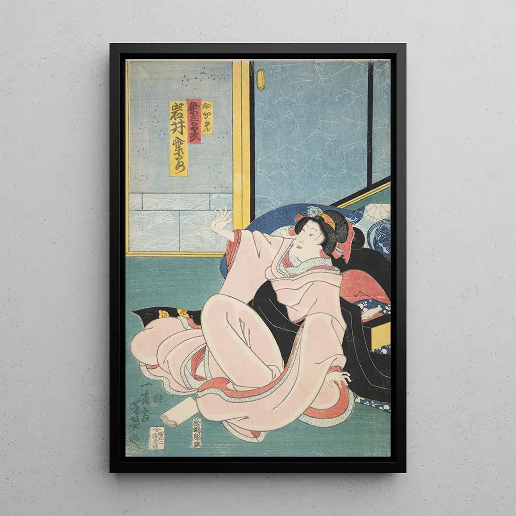 Azuma nishikie Pl40 är en verklig hyllning till traditionell japansk konst. Denna konsttryck utmärker sig med sina livfulla färger och delikata motiv, som framkallar en harmoni mellan natur och kultur. De noggrant utarbetade detaljerna i kläder och landskap skapar en atmosfär av lugn och eftertanke. Varje element i detta konsttryck verkar berätta en historia och bjuder in betraktaren att fördjupa sig i en värld där tiden står stilla. Den mästerliga användningen av ukiyo-e-tekniken ger liv åt scener fyllda av poesi och elegans.
