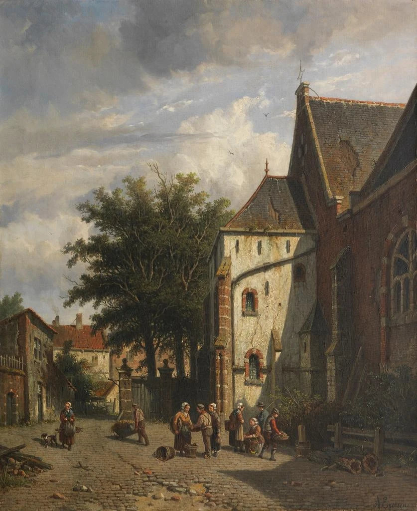 Konsttryck | Bakom den västra kyrkan i Enkhuizen - Adrianus Eversen