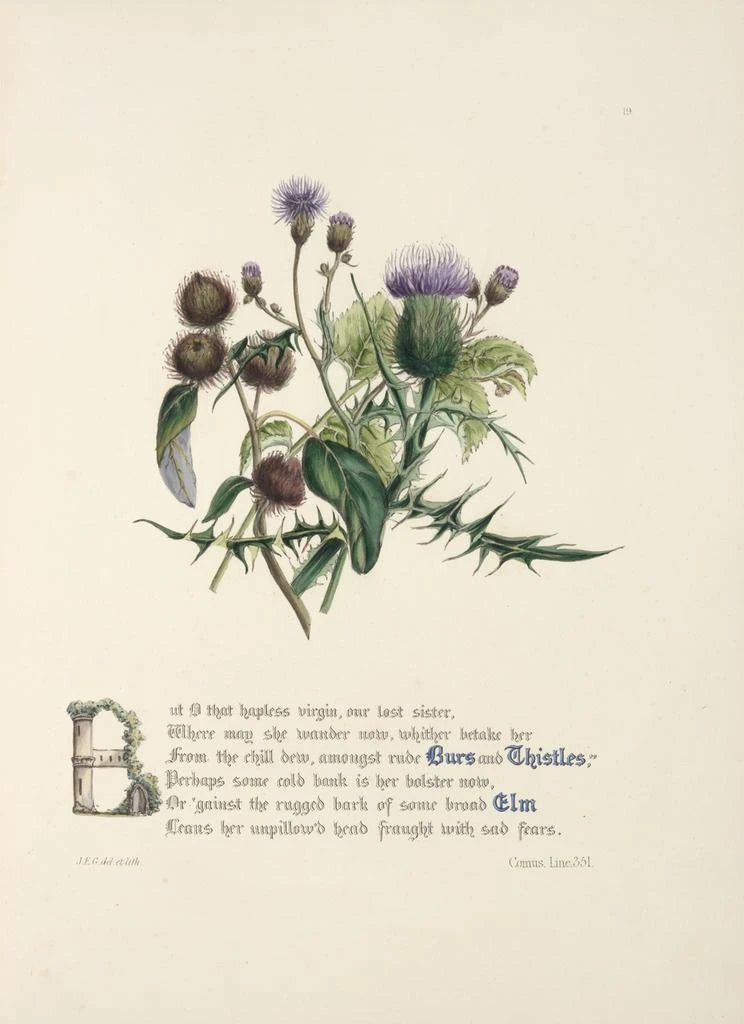 Konsttryck | Bardanes och ekmurar med maskros - Jane Elizabeth Giraud