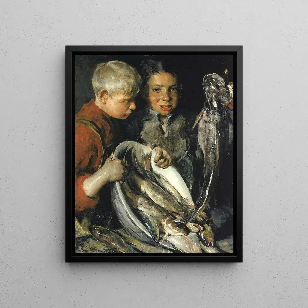 Inom konstvärlden lyckas vissa verk fånga själva essensen av barndomen, avslöja rena känslor och flyktiga ögonblick. "Enfants Fisher - Charles Webster Hawthorne" är ett av dessa verk. Genom denna målning fördjupar sig konstnären i en värld där barnens oskuld blandas med skönheten i marina landskap. Denna tavla, fylld av ljus och mildhet, inbjuder oss till reflektion över enkelhet och glädje i delade stunder. Verket, samtidigt som det är ett vittnesmål om den samtida måleritekniken, väcker också en känsla av nostalgi, som påminner oss alla om minnen från en bekymmersfri barndom.