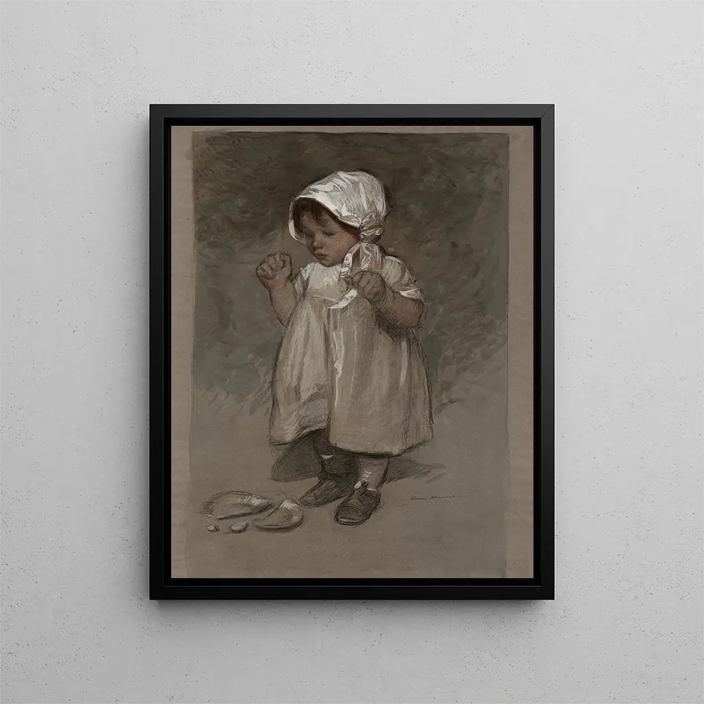 Reproduktion Studie av barn - Firmin Bouisset – Fängslande introduktion L'œuvre "Studie av barn" av Firmin Bouisset är en del av en konstnärlig tradition som hyllar barndomens oskuld och renhet. Fångande ett flyktigt ögonblick, väcker denna målning en påtaglig ömhet, en blick som delas mellan konstnären och dess motiv. Bouisset, genom detta konsttryck, lyckas transcendera det enkla porträttet för att erbjuda en verklig fördjupning i den barnsliga världen. Den mjuka ljuset som badar barnets ansikte skapar en finstämd atmosfär, nästan eterisk, och inbjuder betraktaren att fördjupa sig i minnen av en förlorad barndom. Genom detta konsttryck lyckas konstnären framkalla universella känslor, och påminner oss alla om skönheten i enkla och äkta ögonblick. Stil och unikhet i verket L'originalitet av "Studie av barn" ligger i mästerskapet av chiaroscuro, en teknik som Bouisset använder skickligt för att ge liv åt sitt motiv. De delikata skuggorna som ritar konturerna av ansiktet ger verket en nästan skulptural dimension. Varje detalj är noggrant observerad, från de fina dragen i ansiktet till ljusglimtar i ögonen, vilket visar en skarp känslighet för människans natur. Färgvalet, subtilt nyanserat, bidrar till att skapa en intim atmosfär, där pastelltonernas mildhet framkallar barndomens oskuld. Detta konstverk utmärker sig också genom sin realistiska ansats, samtidigt som det behåller en poetisk lätthet som kännetecknar Bouisset's stil. Konstnären lyckas därmed fånga inte bara barnets fysiska utseende, utan också dess essens, dess själ, vilket gör verket djupt rörande. Konstnären och hans inflytande Firmin Bouisset, fransk målare från 1800-talet, lyckades sätta sitt avtryck på sin tid med sin enastående talang och konstnärliga känslighet. Utbildad vid École des Beaux-Arts, utvecklade han snabbt en stil som blandar realism och romantik, influerad av de klassiska målarmästarna. Bouisset utmärker sig genom sitt intresse för teman som barndom och moderskap, som han närmar sig med oändlig ömhet. Hans verk, ofta fyllda av nostalgi, vittnar om en tid då barndomen sågs som en värld
