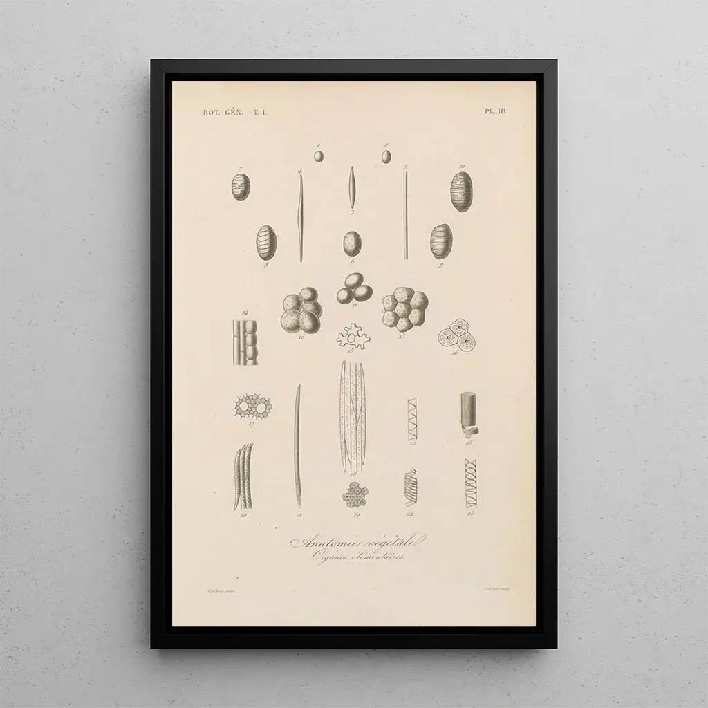 Konsttrycket av målningen Traité de botanique générale Pl018 utgör ett perfekt dekorativt föremål för olika levande utrymmen. Oavsett om det är i ett vardagsrum, ett kontor eller ett sovrum, tillför denna duk en känsla av friskhet och lugn. Dess tryckkvalitet garanterar en trohet mot de ursprungliga detaljerna, vilket möjliggör att fullt ut uppskatta François Hérincqs talang. Den estetiska dragningskraften hos detta verk, med sina livfulla färger och harmoniska komposition, gör det till ett utmärkt val för den som vill berika sitt hem med ett konstverk som är både vackert och lärorikt.