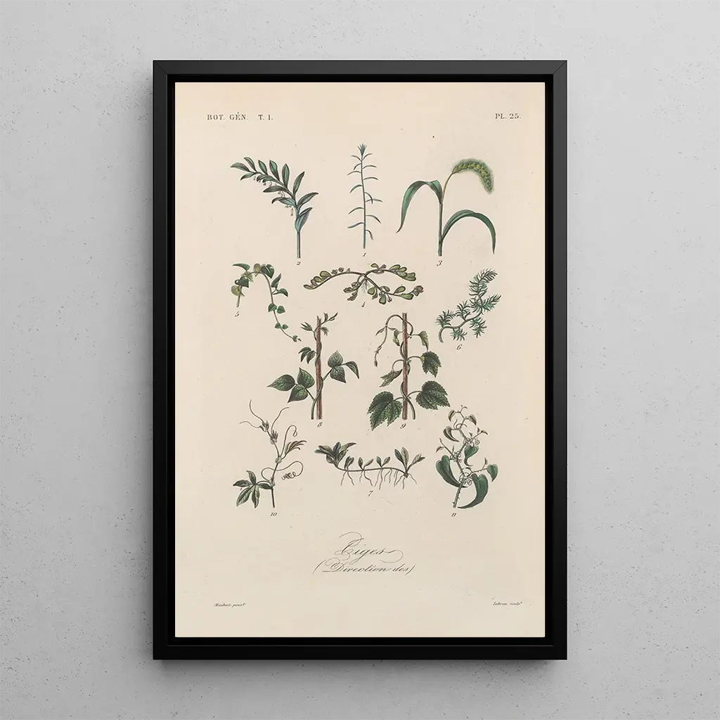 I denna konsttryck av målningen Traité de botanique générale Pl025 bjuder François Hérincq in oss att dyka in i en värld där botanik och konst möts. De noggranna detaljerna av växterna, de livfulla färgerna och den harmoniska kompositionen skapar en lugn och kontemplativ atmosfär. Varje element i duken tycks andas liv, och avslöjar naturens inneboende skönhet. Konstnärens teknik, som förenar vetenskaplig precision med konstnärlig känslighet, för oss till en värld där varje blad och varje blomma berättar en historia.