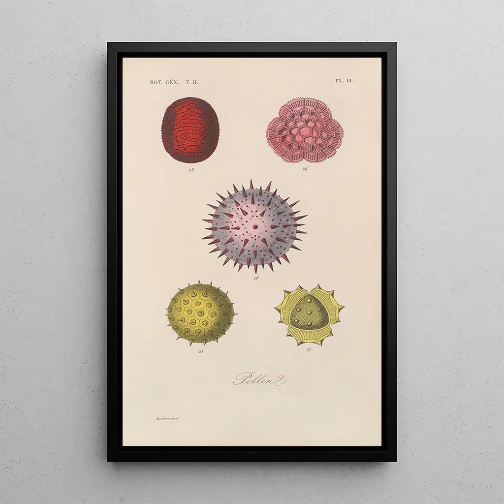 Konsttrycket av tableau Traité de botanique générale Pl065 är en sann hyllning till växtlighetens skönhet. De noggrant återgivna detaljerna av växterna inbjuder till en noggrann eftertanke. De livfulla och varierade färgerna, från klara gröna till delikata blomnyanser, skapar en levande och lugnande atmosfär. Tekniken med akvarell, använd med skicklighet, gör det möjligt att återge genomskinligheten hos blombladen och texturen på bladen, vilket ger en känsla av lätthet och friskhet. Detta verk, både vetenskapligt och konstnärligt, för oss in i en värld där varje växt berättar en historia.