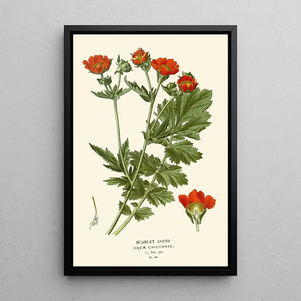 Den konsttryck av Benoîte Écarlate förflyttar oss till en värld där naturen uttrycker sig i all sin prakt. Edward Step lyfter fram rikedomarna i färger och komplexiteten i formerna av denna växt genom detta verk. Nyansen av djupröd och lysande grönt blandas för att skapa en harmonisk och fängslande komposition. Step's teknik, som förenar realism och känslighet, gör det möjligt att känna texturen av kronbladen och lättheten i bladen. Denna målning framkallar en atmosfär av lugn och förbindelse med naturen, och inbjuder betraktaren att beundra den skönhet som omger honom.