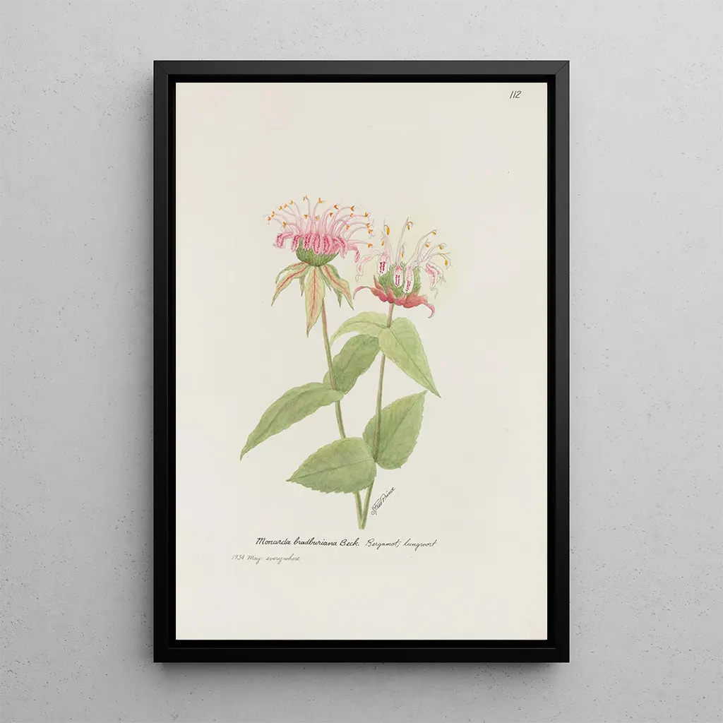 Konsttrycket "Pulmonaire de Bergamote" av S Fred Prince framkallar den delikata skönheten hos växter och naturens rikedom. Med mjuka pastellfärger och organiska former bjuder detta verk in till ett lugnt eftertanke. De noggranna detaljerna i blad och blommor, utförda med en precis teknik, skapar en lugnande atmosfär som förflyttar betraktaren till en hemlig trädgård. Den harmoniska kompositionen av denna målning framhäver livets lätthet och skörhet, samtidigt som den hyllar de naturliga elementens prakt som omger oss.