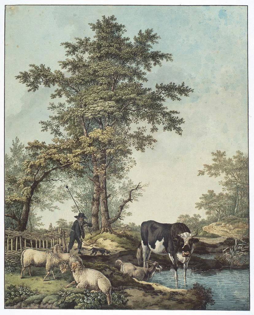Konsttryck | Berger med boskap vid en sjö - Barend Hendrik Thier