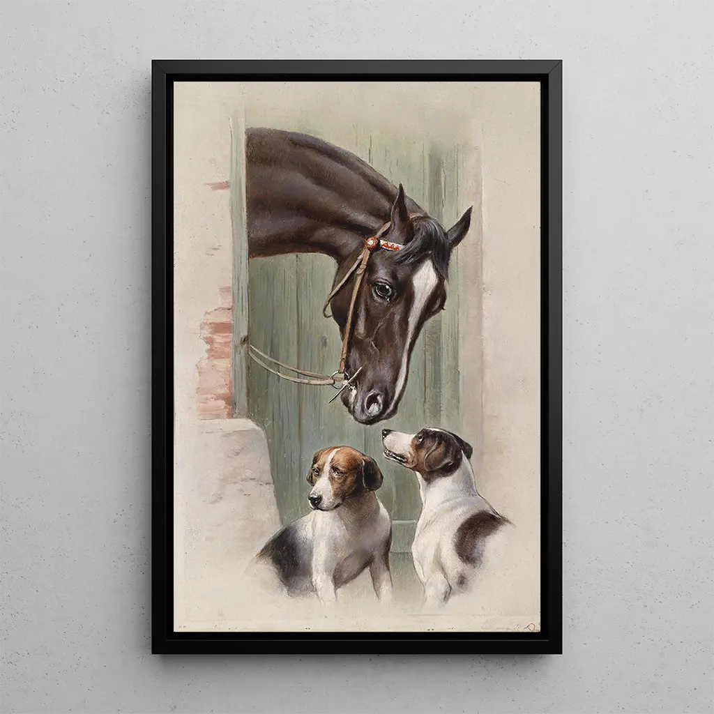 Konsttrycket av Besök på stallet av Carl Reichert fångar ett ögonblick av ömhet och samförstånd mellan människa och djur. I denna intima scen närmar sig en ung pojke en häst, vilket illustrerar det förtroende och den tillgivenhet som kan existera mellan de två. De varma färgerna och ljusspel skapar en lugn atmosfär, medan Reicherts realistiska teknik framhäver detaljerna i djuren och deras omgivning. Denna målning återspeglar den enkla skönheten i delade ögonblick och inbjuder till en lugn eftertanke.