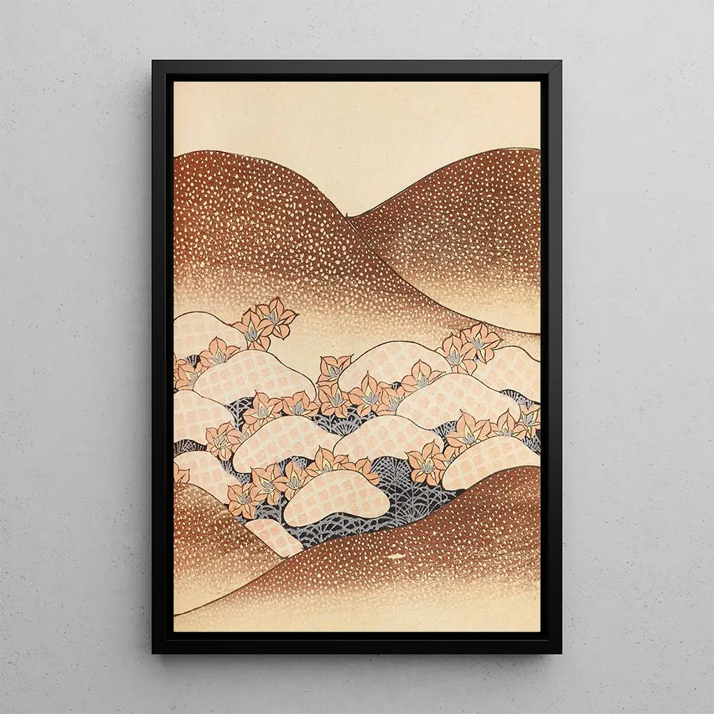 Konsttrycket av Bijutsukai Pl24 framkallar naturens förgängliga skönhet genom delikata och raffinerade mönster. Denna målning, rik på detaljer, fångar essensen av blommor och landskap och skapar en mjuk och drömlik atmosfär. Pastellfärger, subtilt nyanserade, ger lätthet åt hela verket, medan Furuya Korins teknik, som förenar precision och flyt, ger liv åt varje element. Detta konsttryck inbjuder till en lugn kontemplation, där man kan fly in i en värld av skönhet och harmoni.