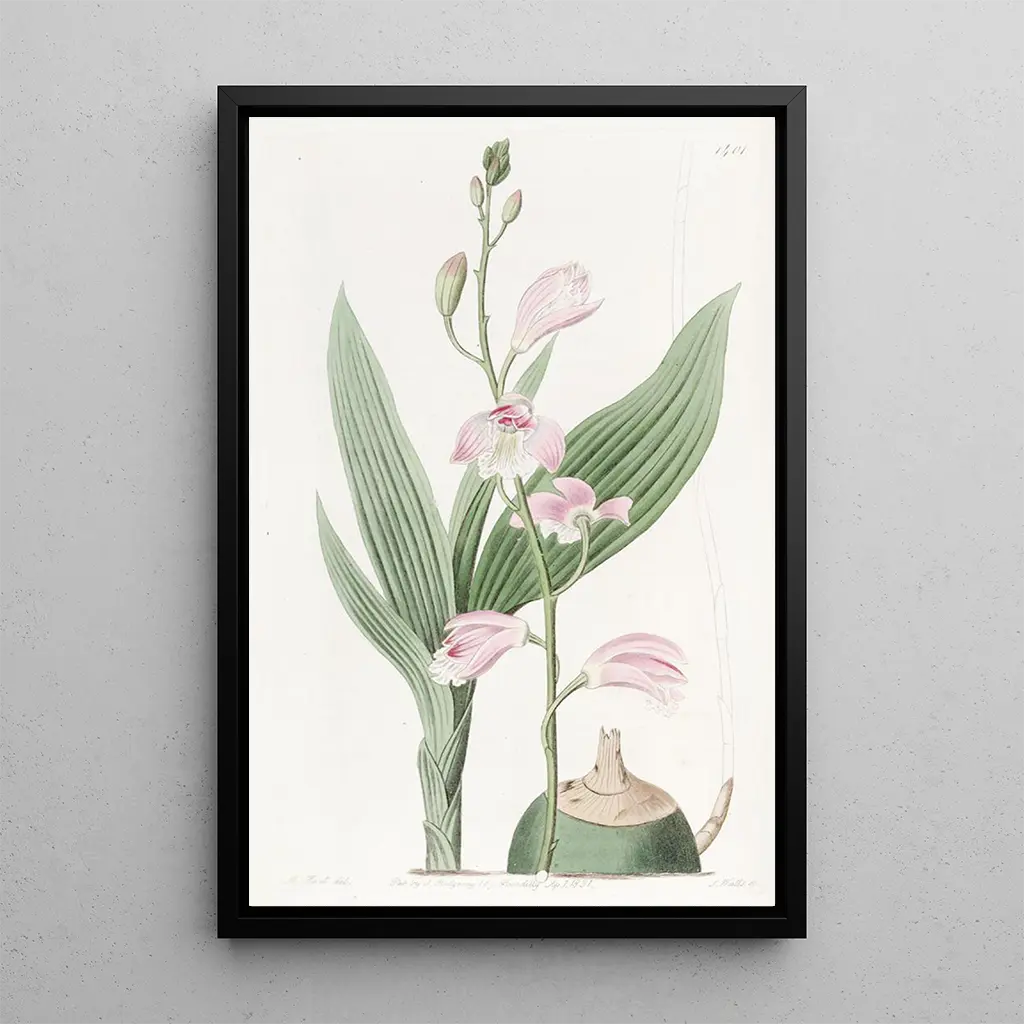 Bletia pâle : en subtil blomster elegans Konsttrycket "Bletia pâle" av Sydenham Edwards framkallar en subtil blomster elegans, som lyfter fram den delikata skönheten hos denna orkidé. De mjuka nyanserna av rosa och vitt kombineras för att skapa en atmosfär av lugn och förfining. Detaljernas precision, typisk för Edwards stil, gör att man kan känna den sköra känslan hos blombladen och den komplexa strukturen hos blomman. Varje element är noggrant återgivet, vilket ger en bild som är både realistisk och poetisk av denna sällsynta växt. Verket inbjuder till noggrann eftertanke och avslöjar naturens underverk. Sydenham Edwards : en mästare inom botanisk illustration Sydenham Edwards, botanisk illustratör från början av 1800-talet, präglade sin tid med sin unika metod som förenar konst och vetenskap. Hans arbete kännetecknas av en noggrann uppmärksamhet på detaljer och en passion för flora. I en tid då intresset för exotiska växter var på uppgång, lyckades Edwards fånga publikens fantasi genom verk som "Bletia pâle". Hans illustrationer har inte bara bidragit till dokumentationen av arter, utan har också inspirerat en bredare uppskattning av botanik. Hans inflytande består, och detta verk vittnar om hans exceptionella talang. En dekorativ tillgång med många fördelar Konsttrycket "Bletia pâle" är ett perfekt dekorativt val för att berika ditt vardagsrum. Oavsett om det är i ett vardagsrum, ett kontor eller ett sovrum, tillför denna canvas en touch av sofistikering och lugn. Kvaliteten på konsttrycket garanterar en anmärkningsvärt trogen återgivning av originalverket, vilket gör det möjligt att uppskatta varje nyans och detalj. Genom att integrera detta konstverk i din inredning skapar du en lugn och elegant atmosfär, samtidigt som du hyllar naturens skönhet. Det är ett stycke som kommer att tilltala konst- och botanikkännare och tillföra en estetisk dimension till ditt hem.