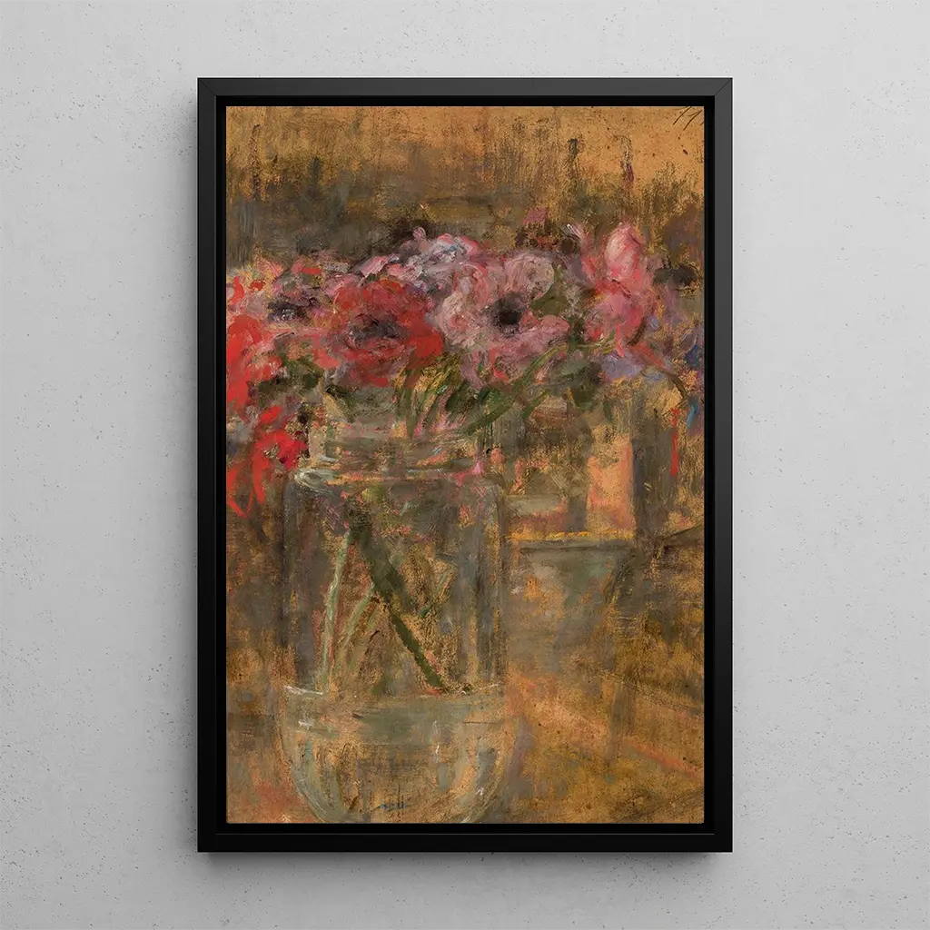 I detta livfulla konsttryck bjuder Olga Boznańska in oss att fördjupa oss i en frodig trädgård där anemonerna blommar i all sin prakt. De strålande nyanserna av rosa, lila och vitt blandas harmoniskt och skapar en atmosfär som är både glad och lugnande. Tekniken med oljemålning gör det möjligt för konstnären att fånga den ömtåliga skönheten hos blombladen och det ljus som dansar över deras ytor. Varje penseldrag tycks ge nytt liv åt dessa blommor, vilket förvandlar duken till en levande tavla där naturen avslöjar sin fulla skönhet.