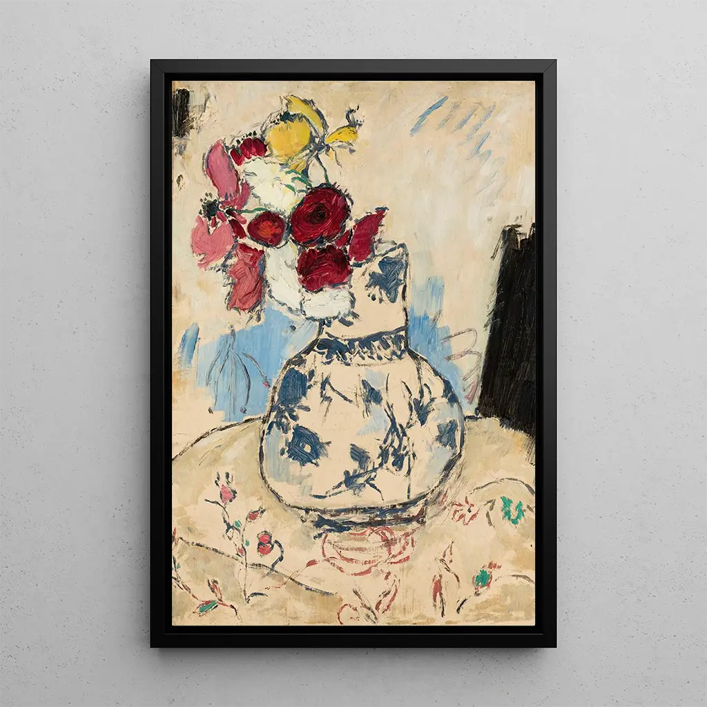 Tadeusz Makowski, polsk konstnär från början av 1900-talet, lyckades fånga essensen av sin tid genom sin unika stil, som förenar modernism och traditionella influenser. Uppvuxen i en konstnärlig miljö, påverkades han av de europeiska avantgardistiska rörelserna, särskilt kubismen och fauvismen. Hans karriär, trots sin korthet, lämnade ett outplånligt avtryck på den polska konstscenen. Makowski utforskade ofta teman som natur och vardagsliv, och förvandlade vanliga scener till vibrerande och poetiska konstverk. Hans arbete, där Fleurs dans un vase är ett utmärkt exempel, visar hans skicklighet att förena teknik och känsla.