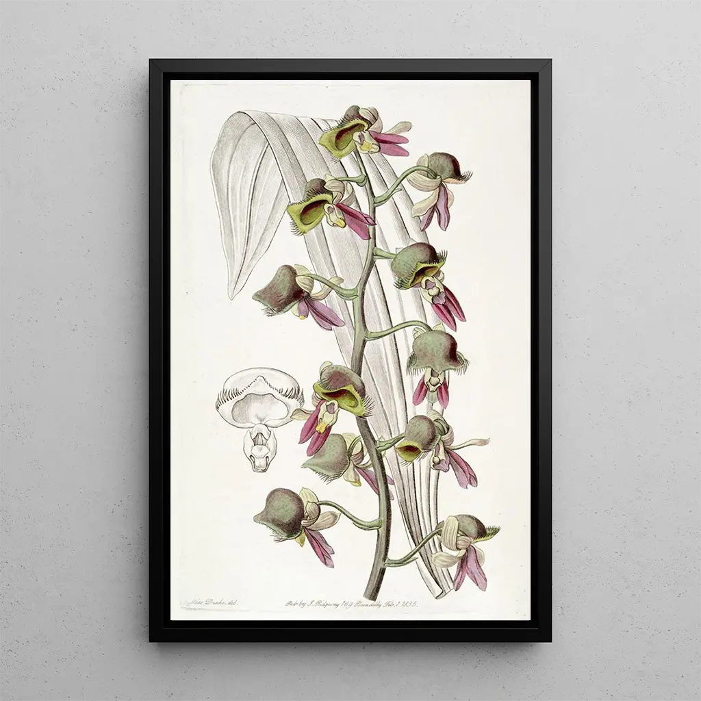 Konsttrycket av Fleur de moine terne fördjupar oss i en värld av mildhet och lugn. Pastellfärger, från mjuk grön till delikat rosa, blandas med en lätthet som framkallar plantans skörhet. Lithografitekniken, som används av Sydenham Edwards, möjliggör fångst av de minsta detaljerna i kronblad och blad, vilket skapar en nästan drömlik atmosfär. Varje element tycks dansa under ljuset, inbjudande betraktaren till en fridfull meditation. Detta verk är mycket mer än en enkel botanisk avbildning, det är en hyllning till naturens flyktiga skönhet.