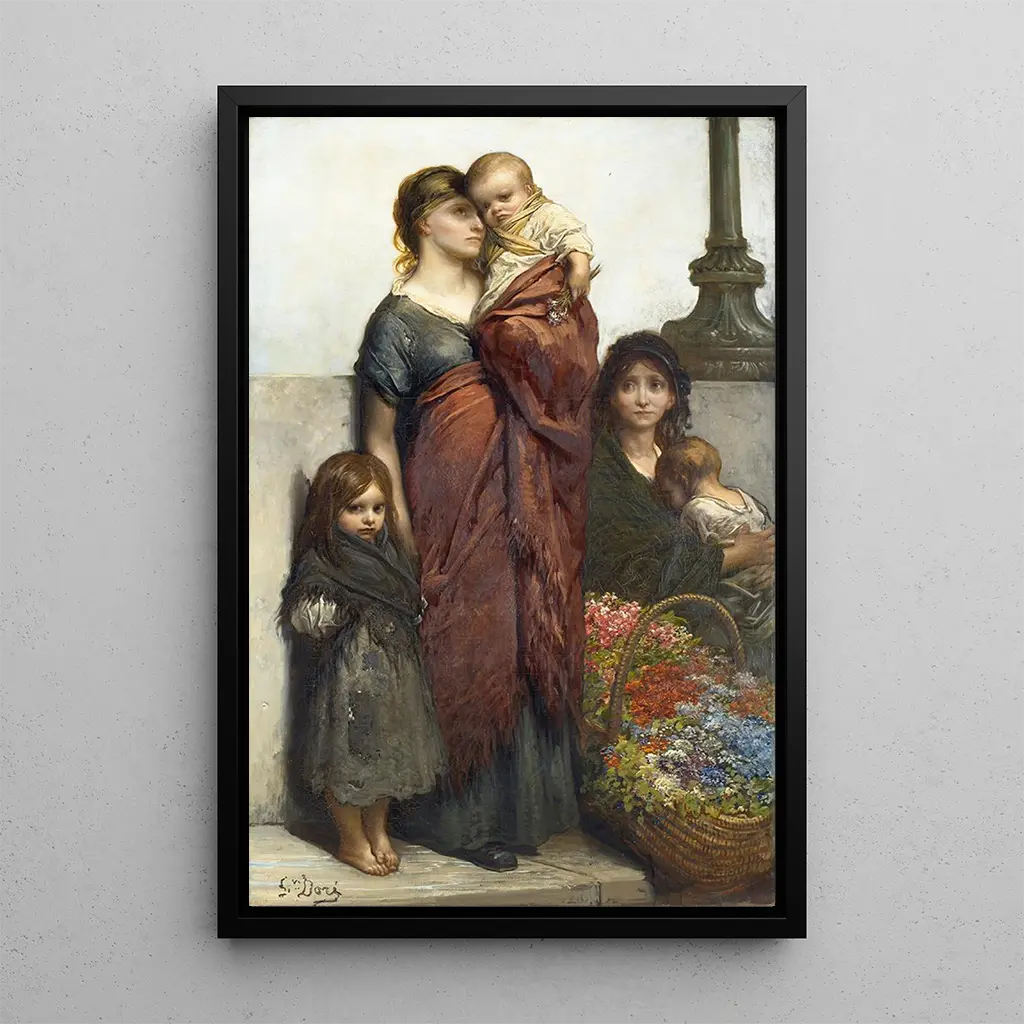 Gustave Doré, född 1832, är en av 1800-talets mest inflytelserika illustratörer. Hans verk sträcker sig från romantiken till illustration av sagor och klassiska berättelser, och markerar sin tid med en unik stil. Påverkad av stora mästare inom målarkonst och litteratur, lyckades Doré förena fantasi och teknik, och skapa verk som går bortom en enkel teckning. "Vendeuses de fleurs à Londres" ingår i en period då konsttryck blev ett fullvärdigt konstnärligt uttrycksmedel, som vittnar om vardagslivet och mänskliga känslor. Hans arv består och inspirerar många samtida konstnärer.