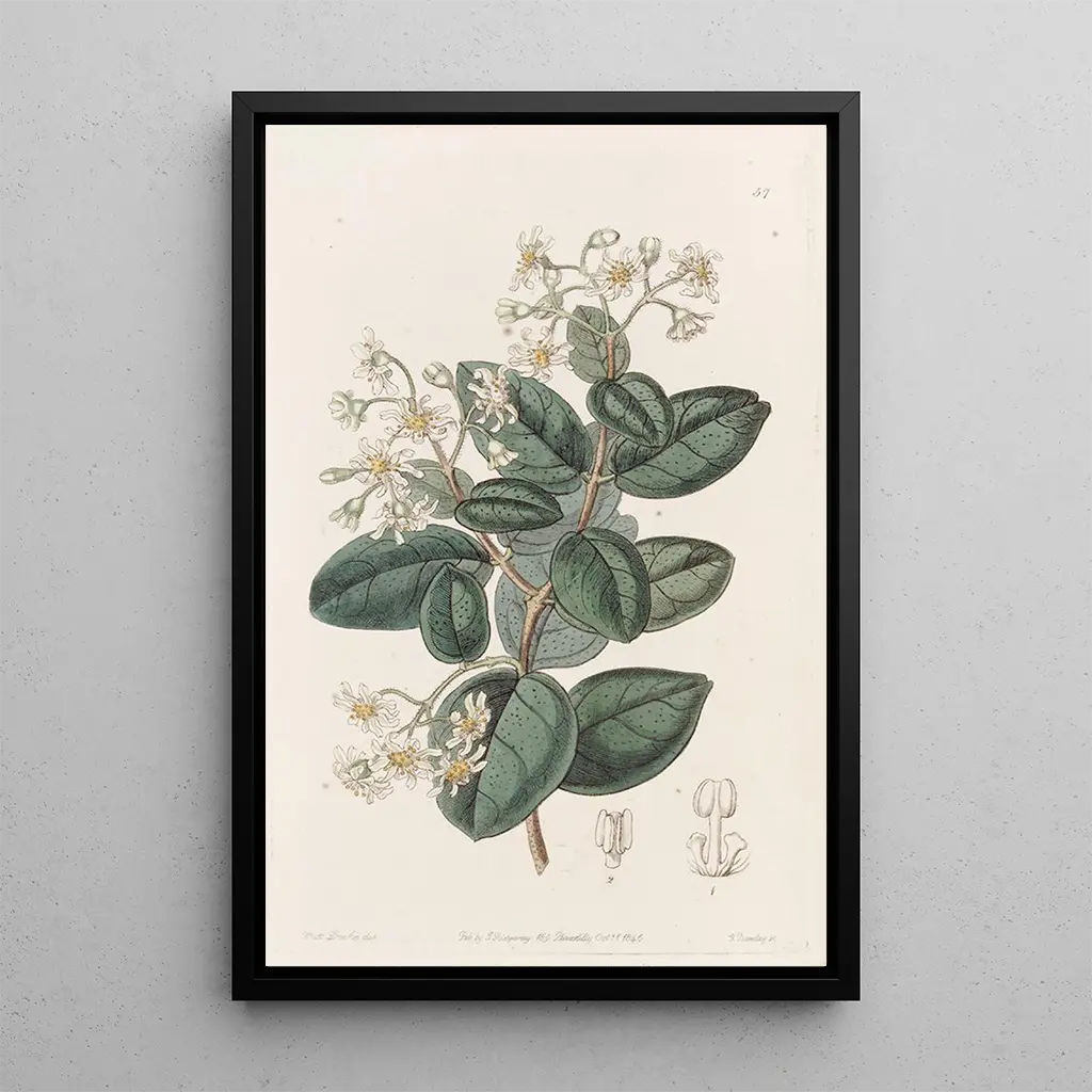 "Boldu doux" av Sydenham Edwards är ett livfullt konsttryck som hyllar färgernas rikedom och formernas mångfald. Denna målning föreställer en mängd exotiska växter, där de strålande nyanserna av grönt, gult och rött blandas för att skapa en dynamisk och fängslande komposition. Tekniken med akvarell gör att Edwards kan leka med ljus och skuggor, vilket ger liv åt varje blad och blomblad. Atmosfären som avtecknar sig från detta konsttryck är både glad och lugnande, och inbjuder betraktaren att fördjupa sig i en frodig och vital värld.