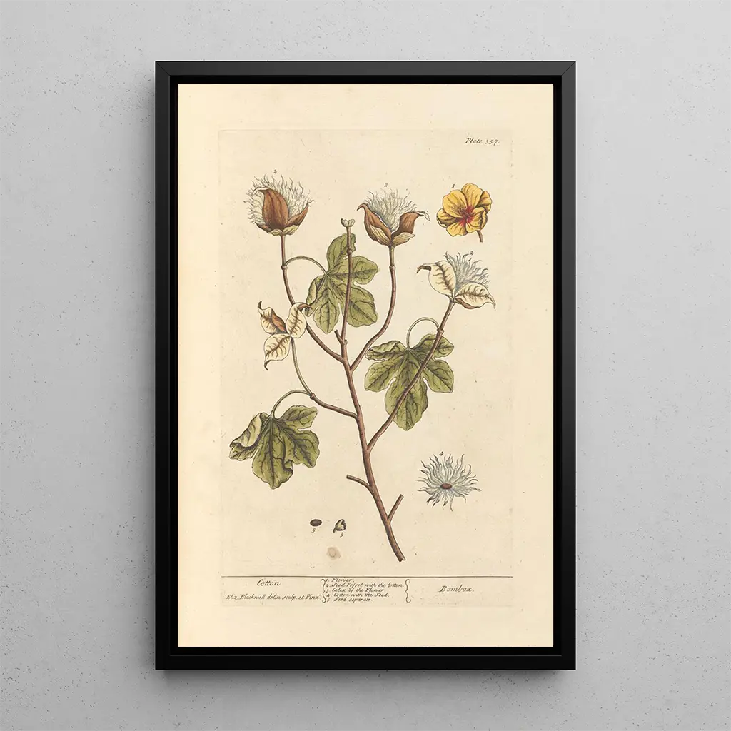 Coton : en hyllning till den naturliga skönheten Konsttrycket "Coton" av Elizabeth Blackwell är en fängslande illustration som lyfter fram den ömtåliga skönheten hos denna viktiga växt. Nyansen av vitt och krämfärgat, kombinerat med gröna inslag, skapar en mjuk och lugnande atmosfär. Den koppargravyrteknik som Blackwell använder gör det möjligt att återge varje fiber och varje blomblad med imponerande precision. Verket utstrålar en känsla av lätthet och friskhet, och bjuder in betraktaren att uppskatta naturens enkla skönhet och dess betydelse i vårt dagliga liv. Elizabeth Blackwell : en pionjär inom botanisk illustration Elizabeth Blackwell, född 1707, är erkänd som en av de första kvinnor som ägnade sig åt botanisk illustration. Hennes verk, "A Curious Herbal", publicerades 1737 och hade en betydande inverkan på botaniken under sin tid. Påverkad av vetenskapliga upptäckter och kulturellt utbyte under perioden, lyckades Blackwell kombinera konst och vetenskap för att hylla floran. "Coton" är ett perfekt exempel på hennes stil, som förenar vetenskaplig precision med konstnärlig känslighet, och vittnar om den växande betydelsen av kvinnor inom vetenskapens område. En dekorativ förvärv med många fördelar Konsttrycket "Coton" är en duk som kommer att försköna vilket som helst utrymme, vare sig det är ett vardagsrum, ett kontor eller ett sovrum. Dess utskriftskvalitet garanterar en exceptionell trohet mot färger och detaljer i originalverket, och tillför en touch av natur och lugn till ditt hem. Den estetiska attraktionen hos detta verk ligger i dess förmåga att framkalla en mjuk och lugnande atmosfär, vilket gör det till ett perfekt val för den som vill berika sin inredning med ett elegant och inspirerande konsttryck.