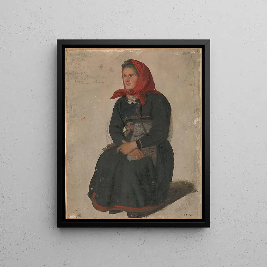 Målningen "Paysanne de Telemark" av Adolph Tidemand är ett ikoniskt verk som för oss in i de norska traditionerna från 1800-talet. Denna duk, fylld av realism, skildrar på ett gripande sätt den dagliga livet för bönderna i Telemark-regionen. Tidemand, med sin obestridliga talang, lyckas fånga inte bara essensen av sina motiv, utan även atmosfären och landskapen som omger dem. Reproduktionen Paysanne de Telemark - Adolph Tidemand är en inbjudan att utforska en rik landsbygd fylld av historia och känslor, där varje detalj berättar en historia, och där den norska naturens skönhet blandas med enkelheten i det bondliga livet.
