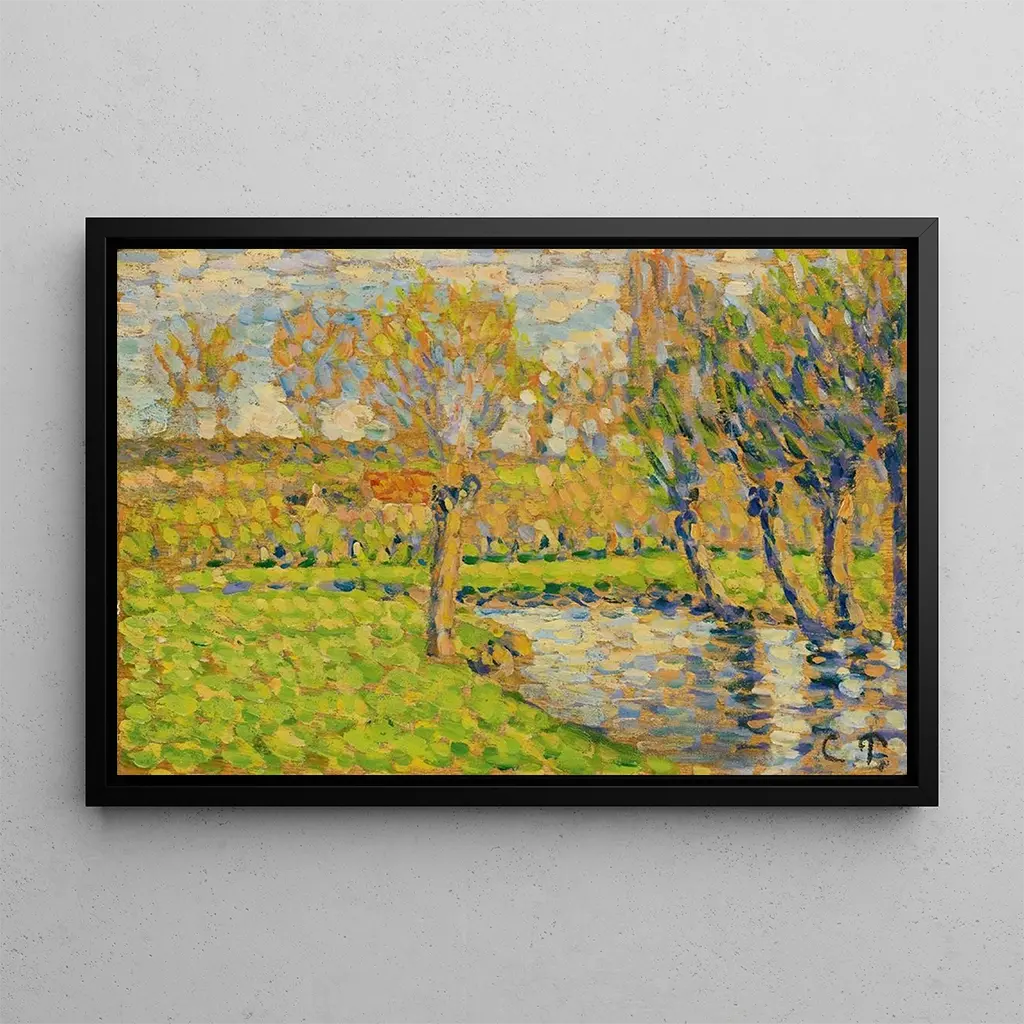 La toile "Bords de l'Epte, Éragny" de Camille Pissarro capture la beauté tranquille d'un paysage rural. Les couleurs vibrantes des arbres et des rivières s'entrelacent pour créer une scène vivante et dynamique. Pissarro, avec sa technique impressionniste, utilise des coups de pinceau rapides et des jeux de lumière pour évoquer la douceur d'un après-midi ensoleillé. L'atmosphère paisible de cette œuvre invite à la contemplation, offrant un moment d'évasion dans la nature.