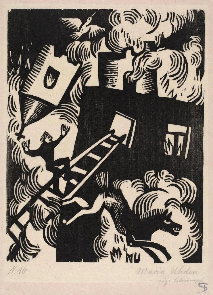 Maria Uhden, aktiv i början av 1900-talet, är en konstnär vars arbete speglar tidens omvälvningar. Påverkad av historiska och sociala händelser har hon ofta tagit upp kontroversiella ämnen i sina verk. Hennes unika stil, som kombinerar element av realism med inslag av expressionism, har gjort att hon utmärkt sig inom konstvärlden. Uhden har lyckats fånga essensen av mänskliga känslor i extrema situationer, som bevisas av "Maison en feu". Hennes konstnärliga arv fortsätter att inspirera och väcka tankar om den mänskliga tillvaron.