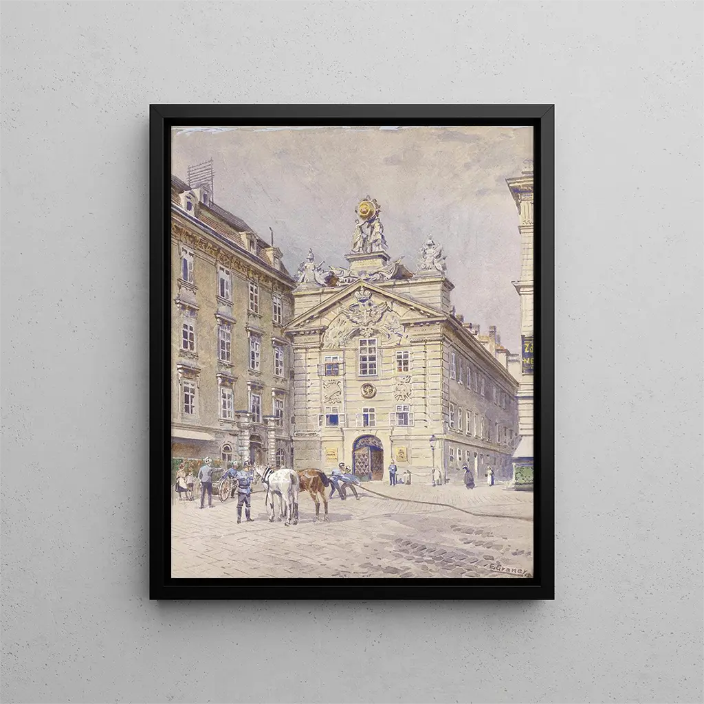 L'"Caserne de pompiers Am Hof Vienne" av Ernst Graner är mycket mer än en enkel arkitektonisk representation. Den förkroppsligar själva essensen av den tid då den skapades, ett avgörande ögonblick i Wiens historia. Detta verk, både monumentalt och intimt, för oss in i den fascinerande världen av arkitektur från början av 1900-talet. Graner, med sin obestridliga talang, fångar inte bara den fysiska strukturen av kasernen, utan också stadens själ, med dess livliga gator och invånare. När man betraktar detta konsttryck, transporteras betraktaren på en visuell och emotionell resa till hjärtat av den österrikiska huvudstaden, och känner den vibrerande energin av dess historia.