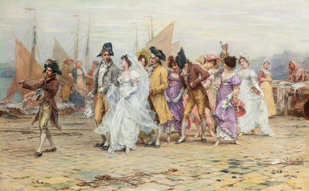 L'artiste de "Le Cortège de mariage" s'inscrit dans une tradition artistique qui valorise les scènes de la vie quotidienne et les rituels culturels. En mettant en avant des moments de célébration, il témoigne de l'importance des liens sociaux et des coutumes au sein de la société. Influencé par les mouvements artistiques de son époque, il cherche à immortaliser des instants chargés d'émotion, où l'amour et la communauté se rejoignent. Cette œuvre, à la fois festive et touchante, rappelle l'importance des traditions dans la construction de notre identité collective.