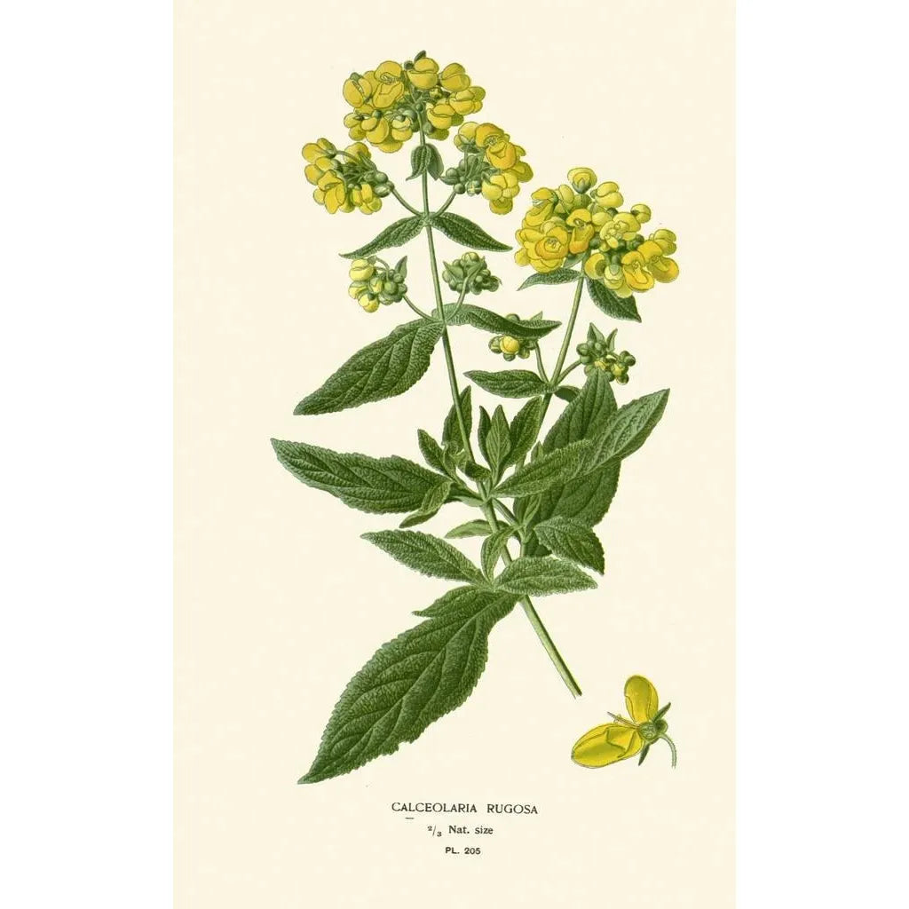 Calceolaria rugosa : en hemlig trädgård i färg Den konsttryck av Calceolaria rugosa avslöjar en fascinerande blomstervärld, där gula och orange nyanser vävs samman för att skapa ett fängslande visuellt skådespel. De rundade formerna och de delikata texturerna hos blommorna känns nästan påtagliga, vilket bjuder in betraktaren att närma sig för att beundra detaljerna. Den finstämda akvarelltekniken ger detta verk en lätthet och en ljusstyrka som framkallar värmen av en solig dag. Denna duk är en sann hyllning till naturen, ett tillfälligt ögonblick där blomsterprakt blommar under våra ögon. Edward Step : en mästare inom botanisk illustration Edward Step, en ikonisk figur från 1800-talet, har satt sitt avtryck i historien om konsttryck av botaniska motiv med sin unika metod och sin passion för naturen. Hans verk, skapade under en tid då studiet av växter fick ett uppsving, förenar vetenskaplig precision med konstnärlig känsla. Påverkad av tidens framsteg lyckades Step fånga den blomstrande mångfalden med ett noggrant öga, och hyllade skönheten hos växtarterna. Hans arv lever vidare idag, och inspirerar många konstnärer och botaniker världen över. Ett dekorativt inköp med många fördelar Konsttrycket av Calceolaria rugosa är ett klokt dekorativt val för att berika ditt boende. Oavsett om det är i ett vardagsrum, ett kontor eller ett sovrum, tillför detta konsttryck en känsla av friskhet och färg, och passar olika inredningsstilar. Dess utskriftskvalitet garanterar en trohet mot de livfulla nyanserna i originalverket, samtidigt som det erbjuder en tydlig estetisk attraktion. Genom att integrera detta konsttryck i din inredning skapar du en välkomnande och inspirerande miljö, samtidigt som du hyllar naturens skönhet.