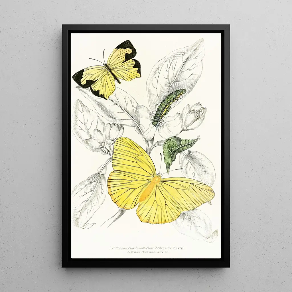 Konsttrycket av tavlan Callidryas Eubule Terias Mexicana är ett dekorativt föremål som passar perfekt i olika utrymmen, oavsett om det är i ett vardagsrum, ett kontor eller ett sovrum. Dess tryckkvalitet och trohet mot originalfärgerna gör det till ett utmärkt val för den som vill tillföra naturen till sitt hem. Den estetiska dragningskraften hos denna canvas ligger i dess förmåga att framkalla lätthet och skönhet i den naturliga världen, samtidigt som den tillför en touch av sofistikering till din inredning. Det är ett verk som garanterat väcker beundran och berikar din omgivning.