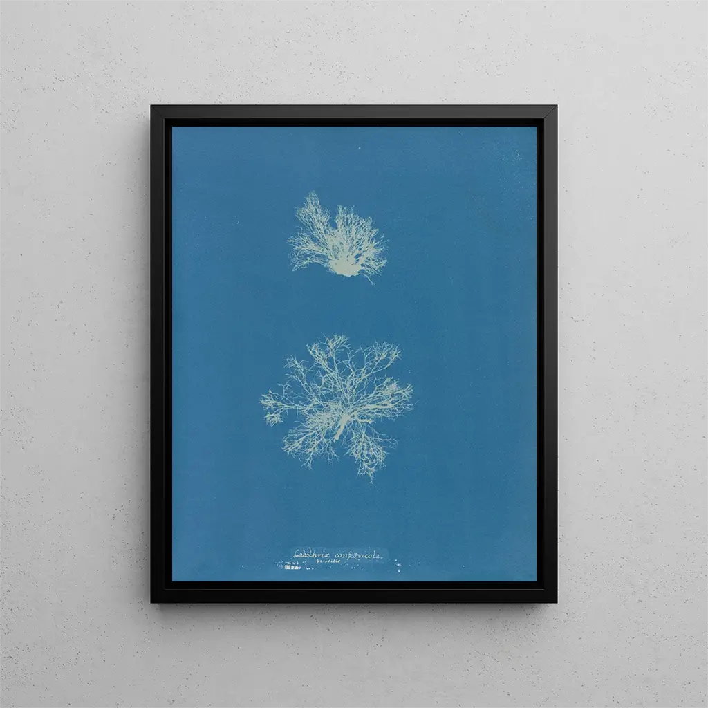 Unikheten hos "Calothrix confervicola" ligger i dess djärva användning av cyanotypetekniken, en metod som möjliggör skapandet av djupblå tryck. Denna teknik, både enkel och sofistikerad, ger verket en unik atmosfär där varje nyans av blått dialogerar med algens textur. Anna Atkins, som pionjär inom fotografi, lyckas fånga inte bara det fysiska utseendet av sitt motiv utan också dess essens. De delikata formerna och de minucösa detaljerna i denna alg framhävs, vilket skapar en harmoni mellan det naturliga motivet och den konstnärliga processen. Denna subtila balans mellan vetenskap och estetik gör detta verk till ett perfekt exempel på botanisk konst, där varje konsttryck blir en hyllning till naturens skönhet.