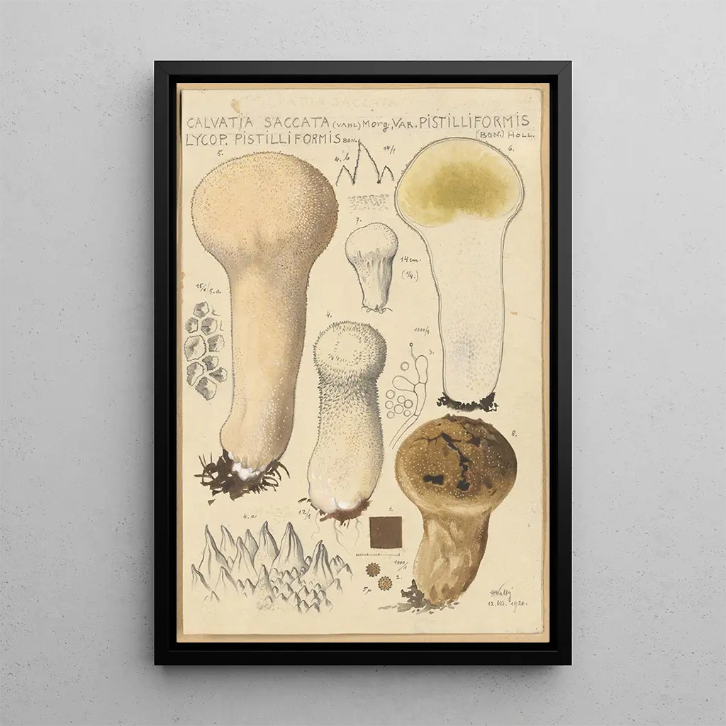 Calvatia saccata var Pistilliformis : en konsttrycksresa till myceliums hjärta Den konsttryck av Calvatia saccata var Pistilliformis är en visuell utforskning av svamparnas skönhet. Denna tavla, med sina runda former och jordnära nyanser, framkallar en naturlig värld som är både fascinerande och mystisk. De noggranna detaljerna på svampens yta, utförda med omsorg, skapar en immersiv atmosfär som fångar betraktarens uppmärksamhet. Ljuset leker över konturerna, förstärker de subtila nyanserna och avslöjar komplexiteten hos denna art. Varje element i kompositionen verkar bjuda in betraktaren att upptäcka naturens gömda hemligheter, vilket gör detta verk till en verklig visuell skatt. Hans Baldung : konstnären vid korsvägen mellan tradition och innovation Hans Baldung, en framstående figur från renässansen, lyckades förena tradition och innovation i sina skapelser. Aktiv i början av 1500-talet, påverkades han av tidens stora mästare, samtidigt som han utvecklade en egen distinkt stil. Hans fascination för naturliga och mystiska teman återspeglas i hans verk, där han utforskar relationen mellan människa och natur. Konsttrycket av Calvatia saccata illustrerar perfekt denna ansats, och lyfter fram skönheten i organiska former och deras symbolik. Baldung bidrog därmed till att berika sin tids konstnärliga arv och lämnade ett varaktigt avtryck i konsthistorien. En dekorativ tillgång med många fördelar Konsttrycket av Calvatia saccata var Pistilliformis är ett perfekt tillskott till din inredning, oavsett om det är ett vardagsrum, ett kontor eller ett sovrum. Dess tryckkvalitet och trohet mot detaljer gör det till ett fängslande konstverk som fångar ögat. Med sina mjuka och naturliga färger ger detta konsttryck en känsla av lugn och harmoni till ditt utrymme. Genom att integrera det i din inredning skapar du en varm och välkomnande atmosfär, samtidigt som du hyllar naturens skönhet. Ett verk som kommer att tilltala konst- och botanikkännare och samtidigt berika din dagliga miljö.