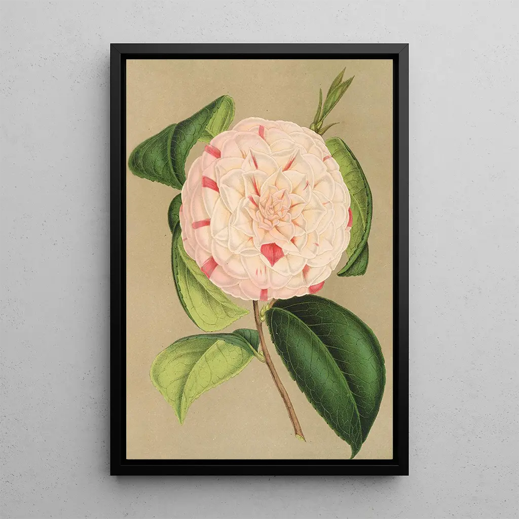 Konsttrycket av Camellia Luisa Bartoloni, ett fascinerande verk av Charles Antoine Lemaire, framkallar en sällsynt elegans. Camellia-blommorna, vackert återgivna, breder ut sig med grace och avslöjar nyanser som sträcker sig från djuprött till skinande vitt. Lemaire-tekniken, som kombinerar akvarell och teckning, ger denna målning en mjuk och drömsk atmosfär. Varje kronblad tycks vibrera under ljuset och inbjuder till en noggrann och poetisk betraktelse av naturen. Detta verk är en sann hyllning till blomsters sköra skönhet, fångad med en anmärkningsvärt precision.