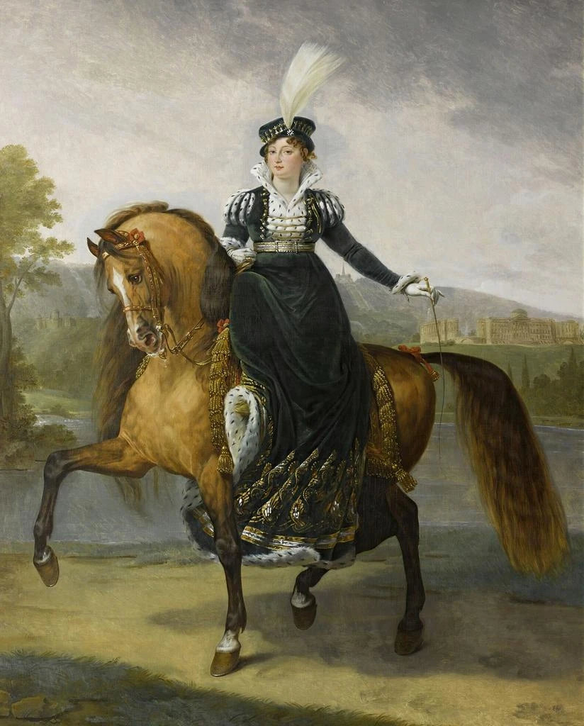 Antoine-Jean Gros stil kännetecknas av en romantisk ansats och ett särskilt fokus på detaljer. I "Catharina Württemberg-Westphalie" förstärks de finstämda dragen och känslouttrycken av en palett av varma och inbjudande färger. Konstnären lyckas transcendera den enkla representationen för att erbjuda en verklig emotionell upplevelse. Den magnifika draperingen av hertiginnans klänning, ljusreflexerna på hennes smycken och den noggrant utarbetade bakgrunden bidrar alla till att skapa en atmosfär av storhet och majestät. Den slående realism i kompositionen, kombinerad med en viss idealisering av figuren, vittnar om Gros tekniska skicklighet. Varje element i konstverket är utformat för att förstärka den visuella och emotionella effekten, vilket gör detta porträtt till ett ikoniskt verk inom neoklassicismen.