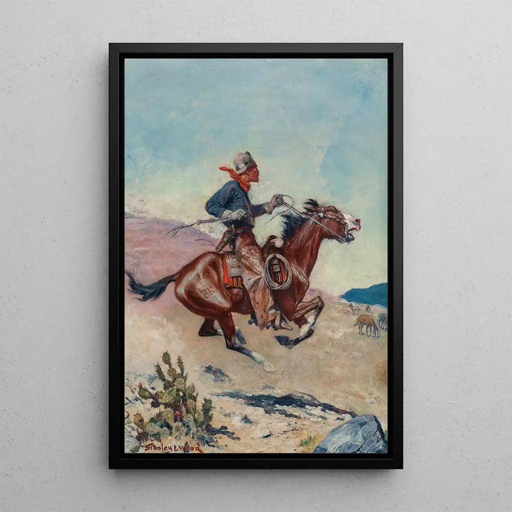 Stanley Llewellyn Wood, brittisk konstnär verksam i slutet av 1800-talet, är känd för sina verk som hyllar den amerikanska västern och dess legender. Påverkad av tidens berättelser har han lyckats fånga storheten i landskapen och den oböjliga andan hos de personer som bor där. Hans verk, ofta inspirerade av historiska händelser, vittnar om en tid då Pony Express symboliserade snabbhet och djärvhet i kommunikationen. Wood lyckades etablera sig som en viktig konstnär under sin tid, och blandade realism och romantik för att ge liv åt ikoniska scener ur amerikansk historia.